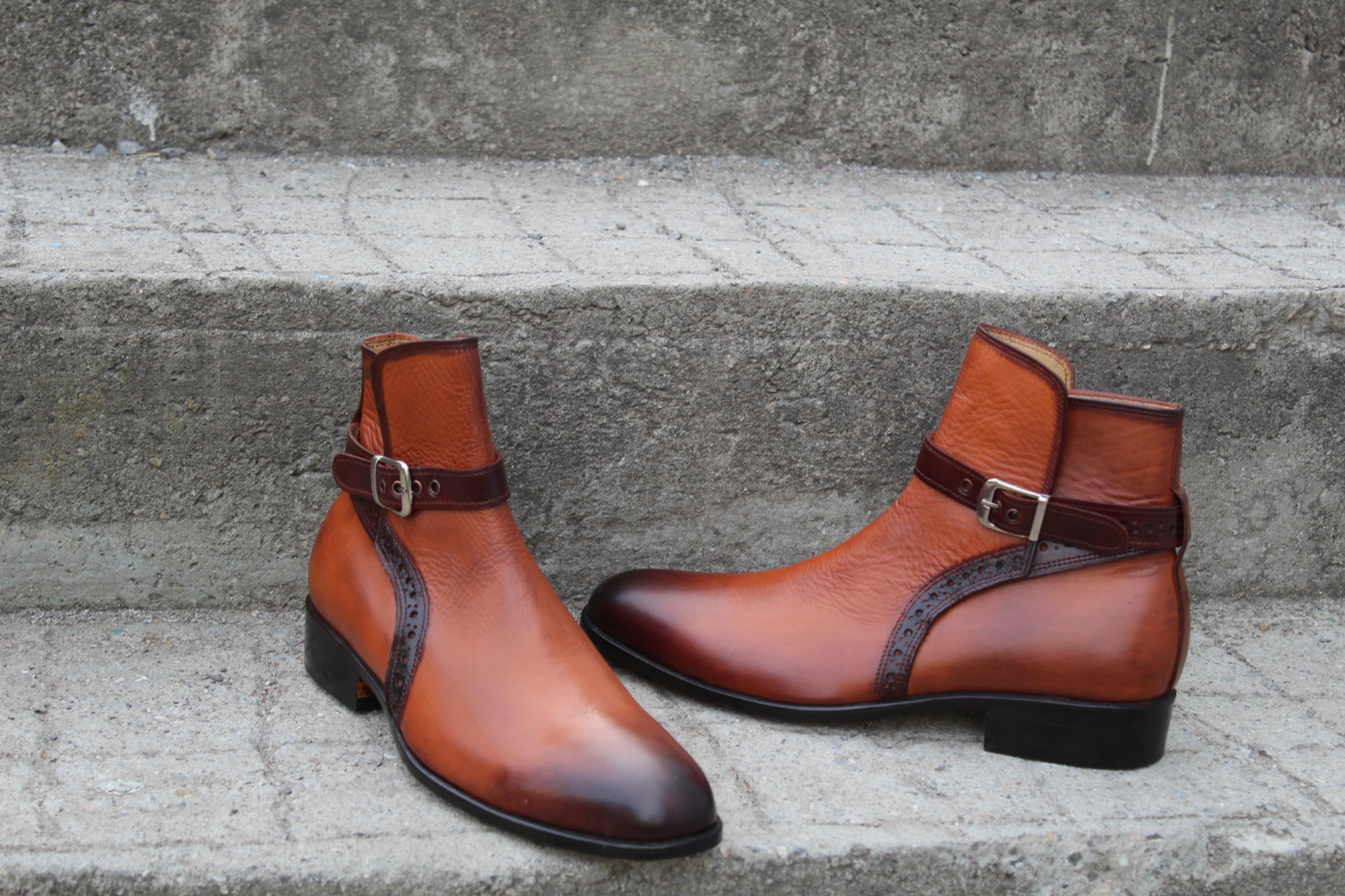 Crafted Leather Bespoke Dress Shoes Brown Leather Jodhpur Strap Boot