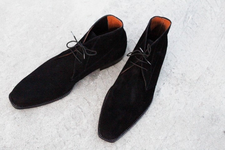 Crafted Leather Classic Black Suede Leather Chukka Lace up Boot