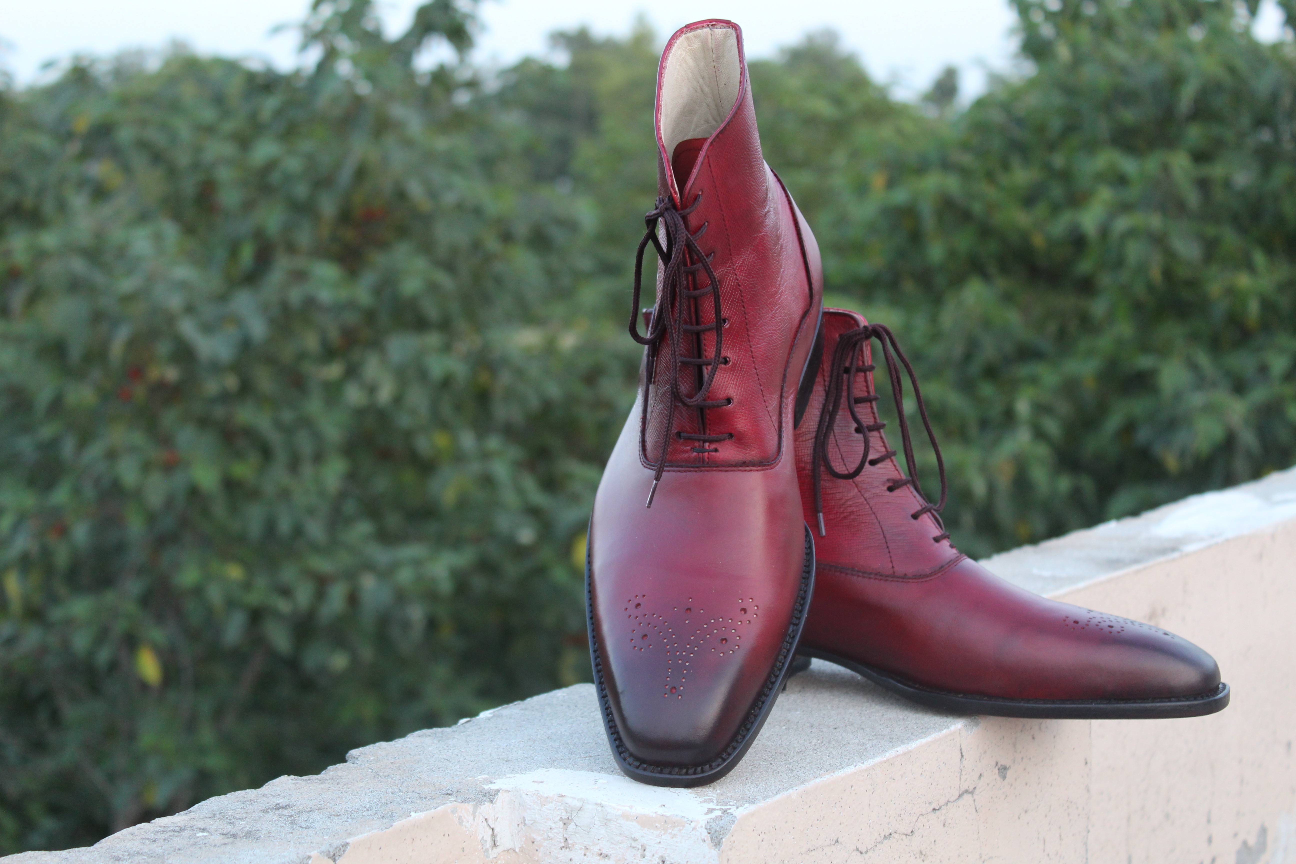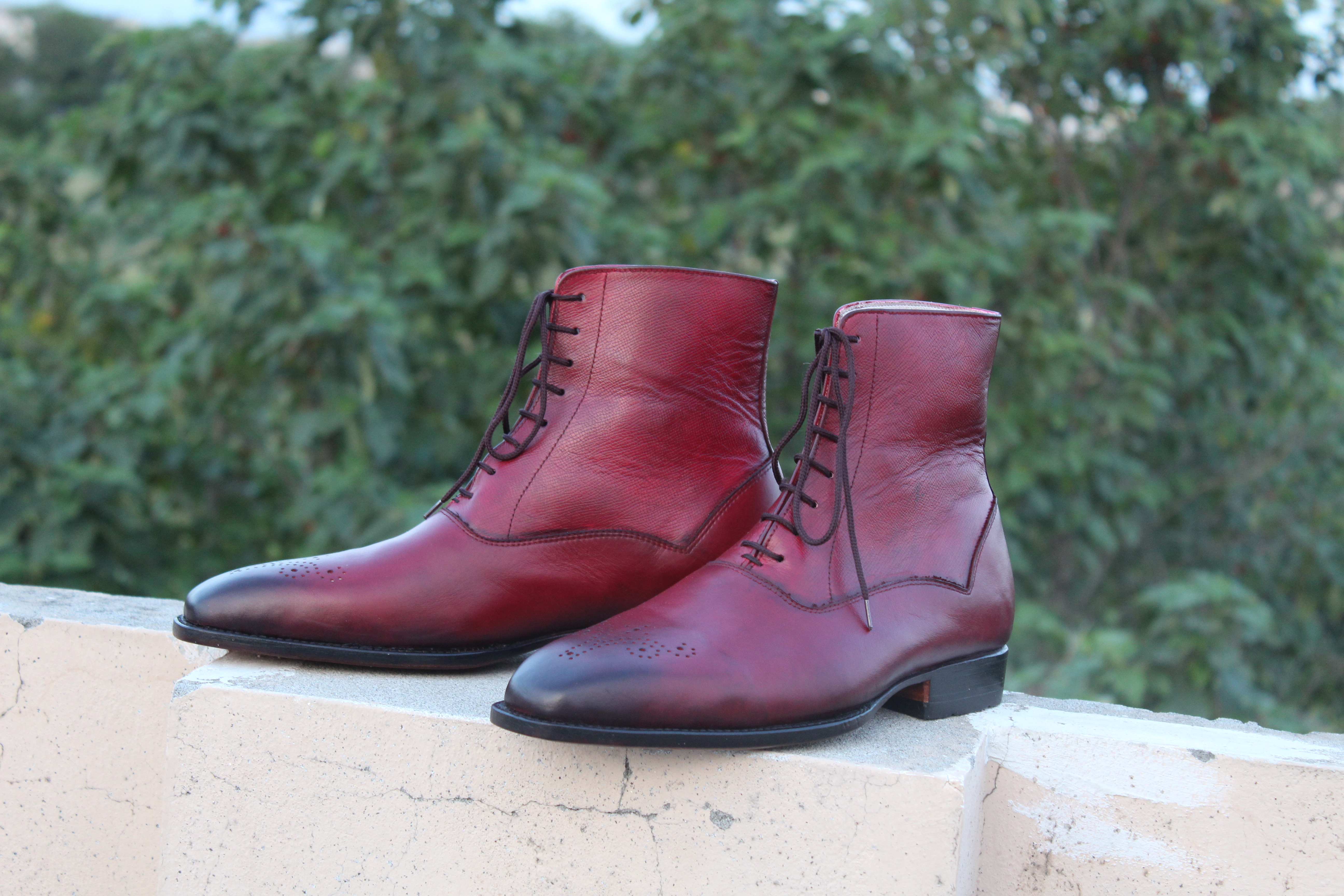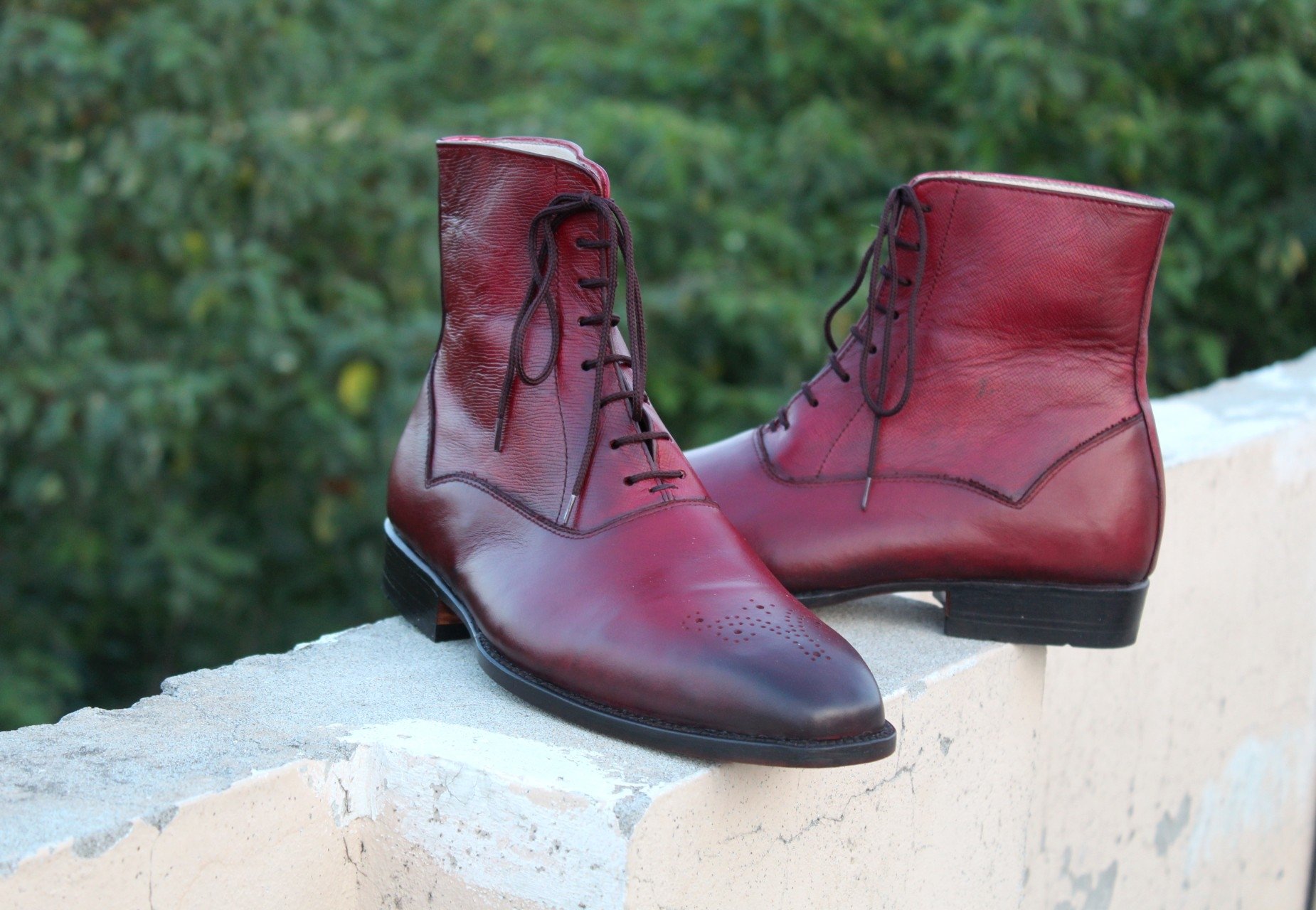 Crafted Leather Bespoke Shoes Classic Burgundy Leather Ankle High Lace up Dress Boot