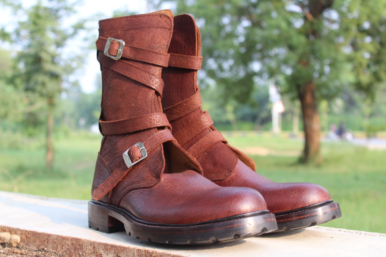 Inner: Soft Leather Sole: Leather Gender : Male Heel: Leather Color: Brown Style: Military Strap Boot Lining Soft Calf Leather Lining Totally Hand stitched Manufacturing time 7-10 business days If you can’t find your Size/Colorjust send us message we will make for you.