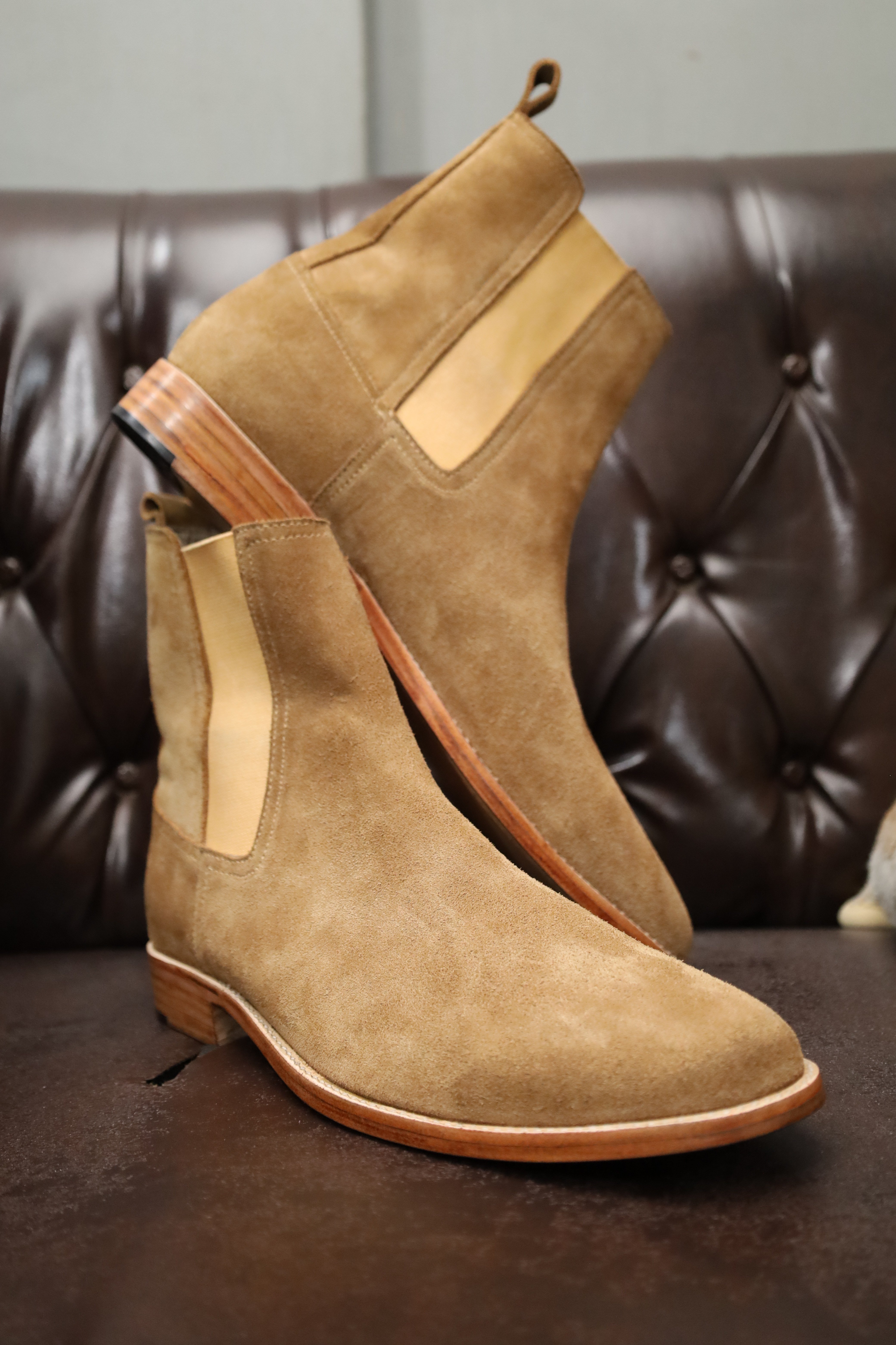 Crafted Leather Bespoke Men Shoes Classic Suede Leather Chelsea Dress Boot