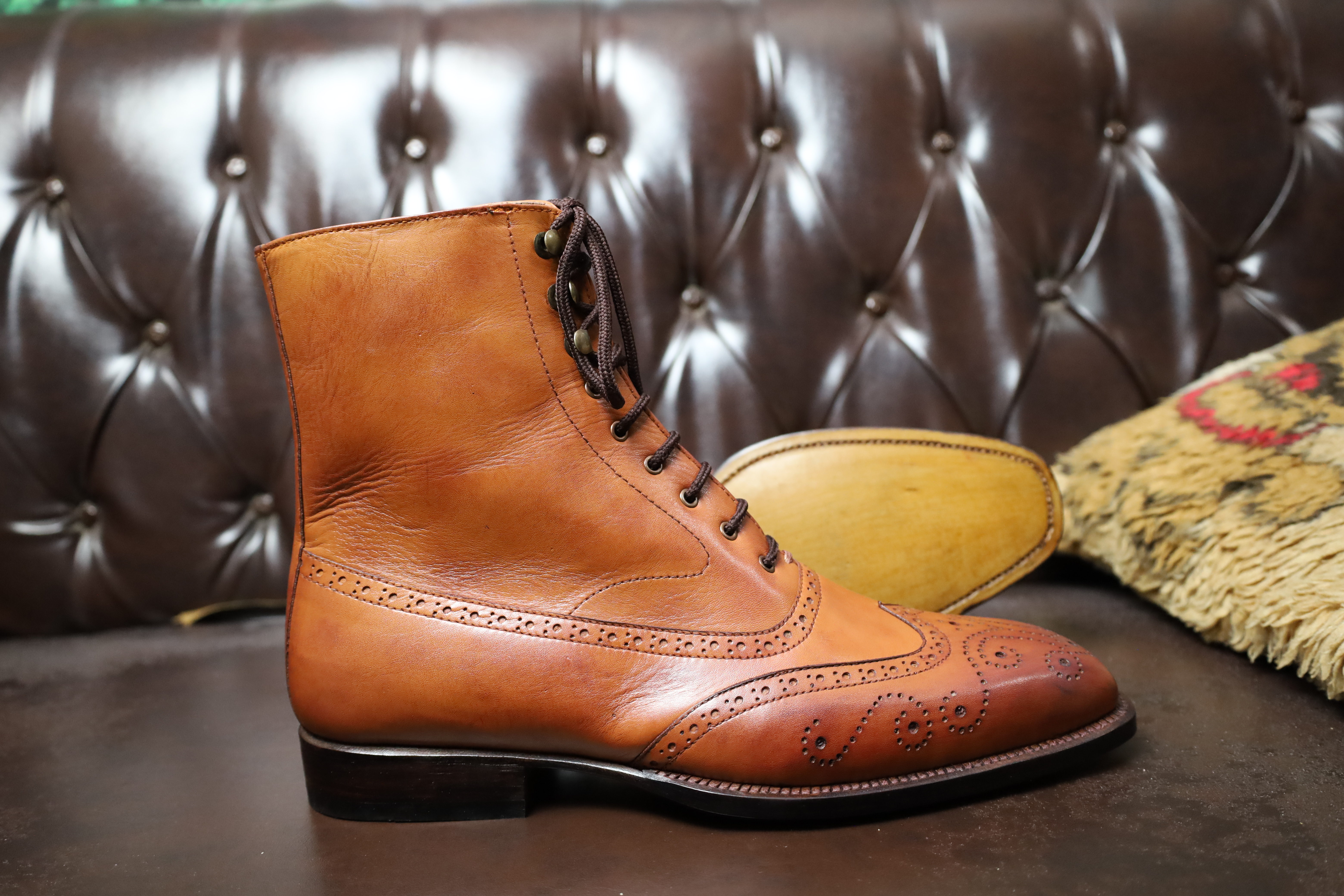 Inner: Soft Leather Sole: Leather Gender : Male Heel: Leather Color: Brown Style: Ankle High Wingtip Boot Lining Soft Calf Leather Lining Totally Hand stitched Manufacturing time 7-10 business days If you can’t find your Size/Colorjust send us message we will make for you.