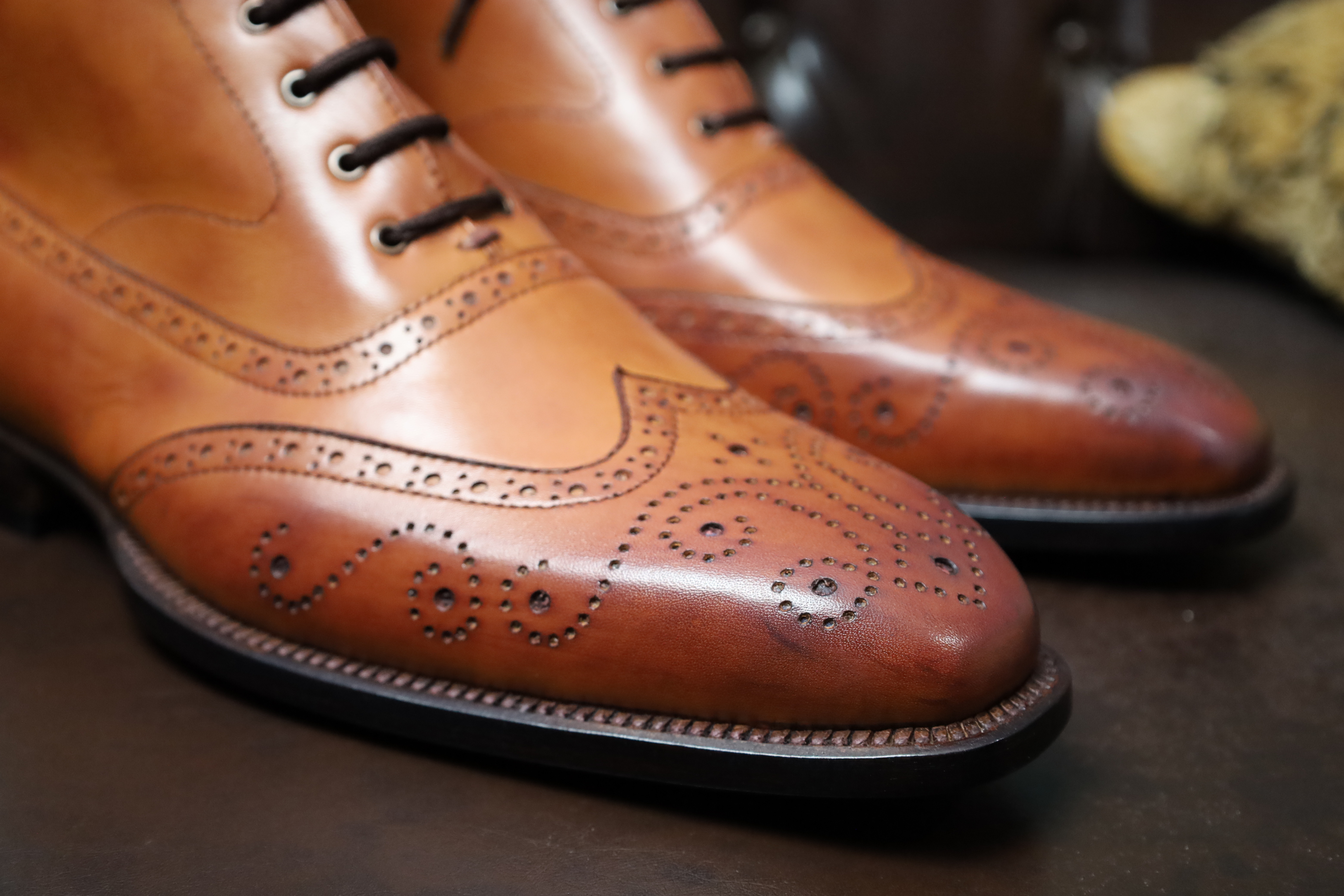 Crafted Leather Classic Dress Shoes Brown Leather Wingtip Ankle High Boot