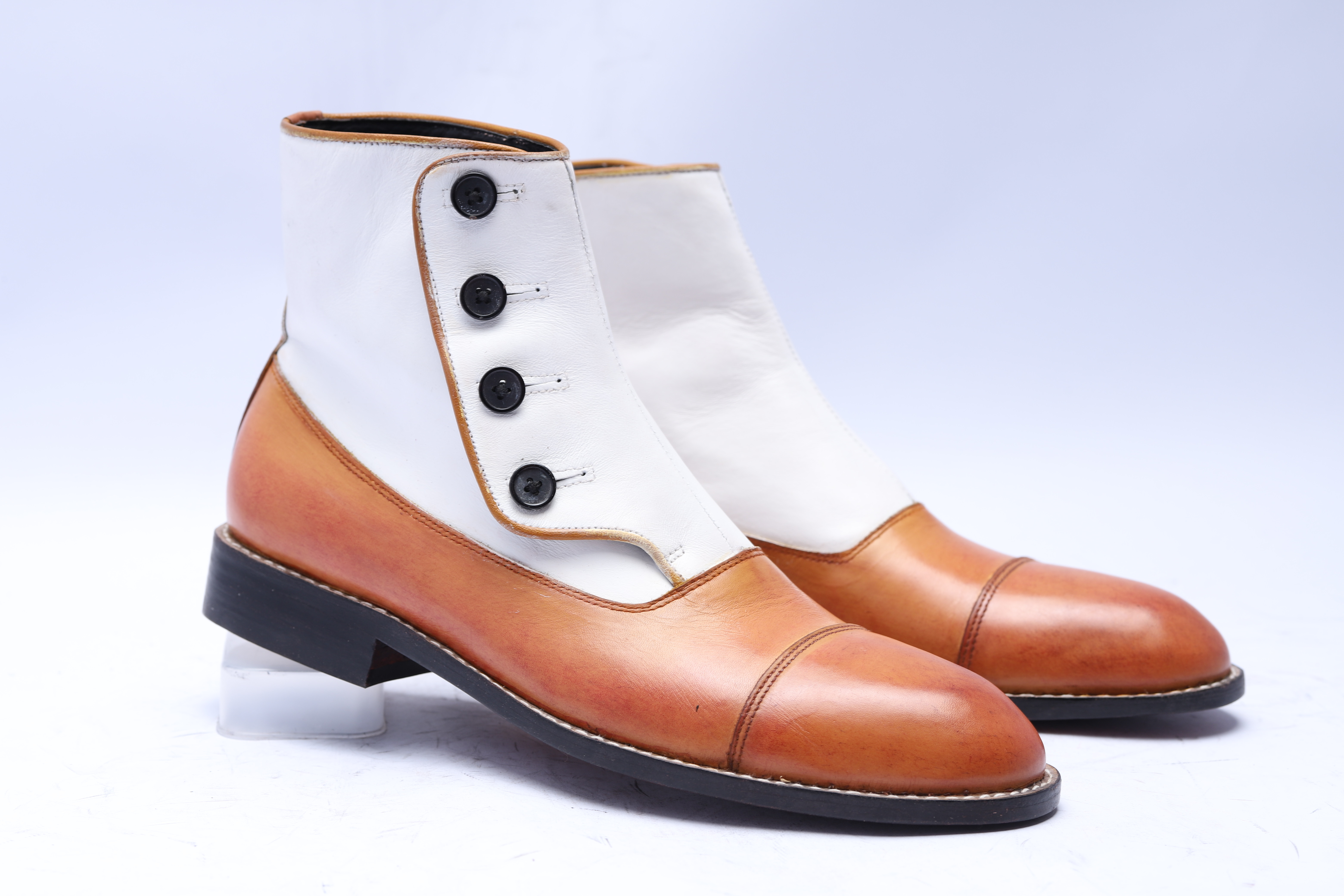 Crafted Leather Classic Dress Shoes Genuine Leather and Suede Ankle High Button Boot