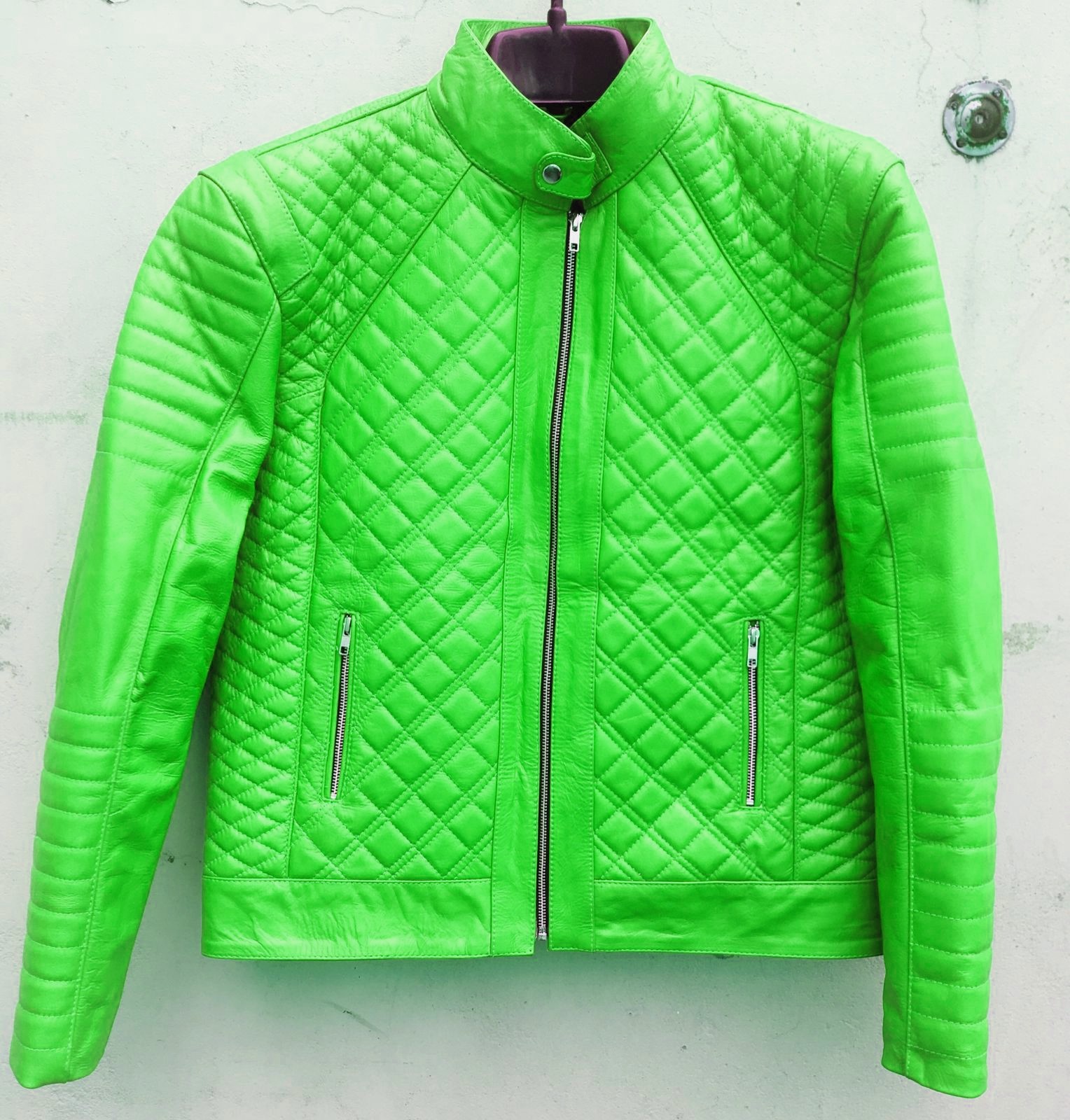 Crafted Leather Mens GREEN QUILTED Slim Fit Motorcycle Fashion Outfit Diamond Stitch Pattern Leather Jacket