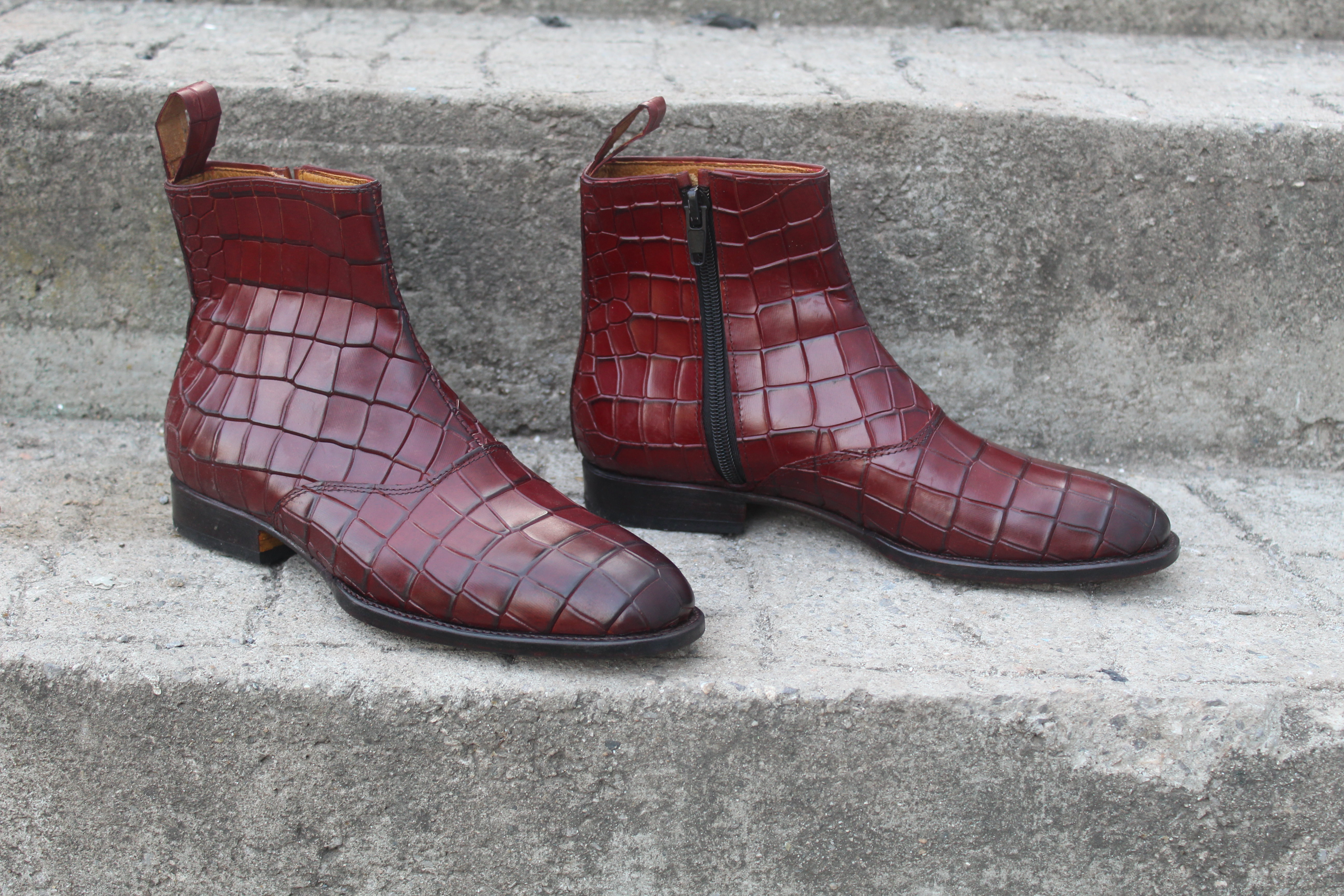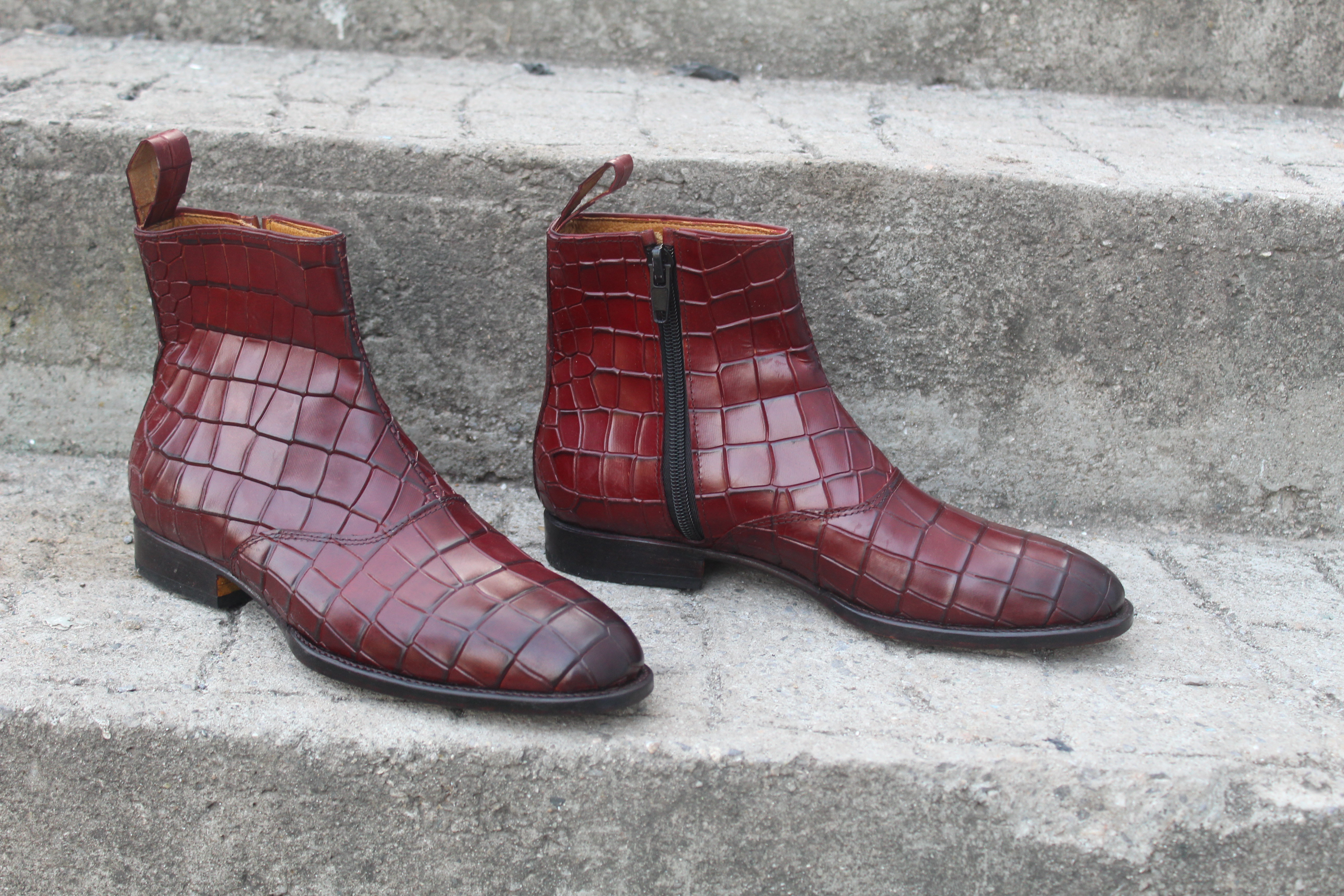 Crafted Leather Classic Dress Shoes Brown Crocodile Alligator Leather Ankle High Jodhpur Boot