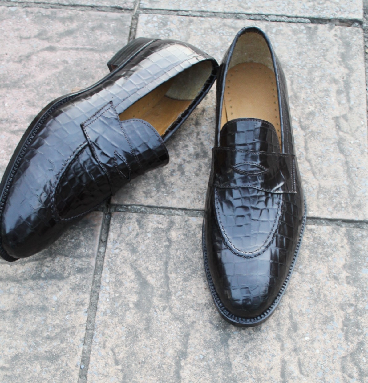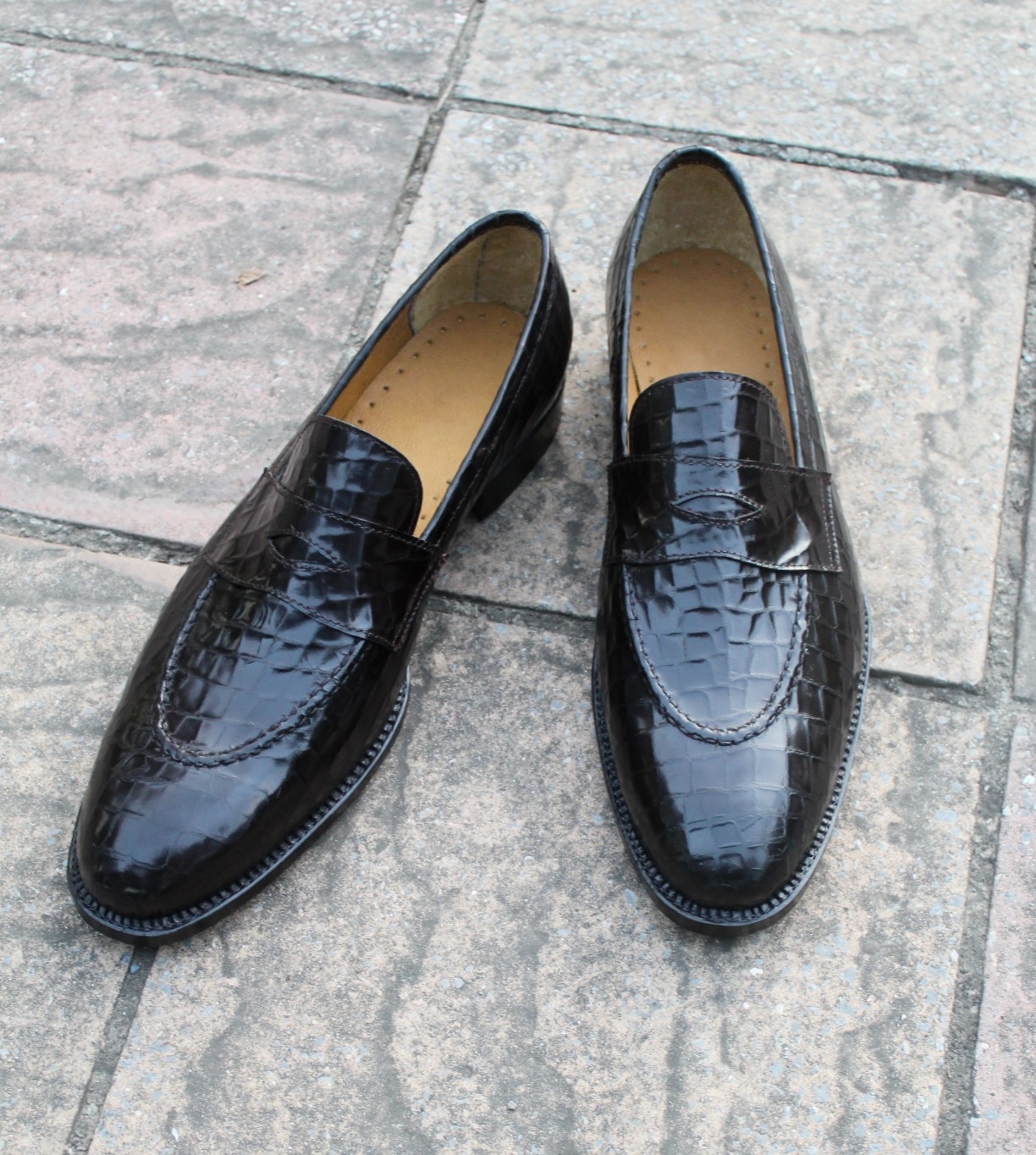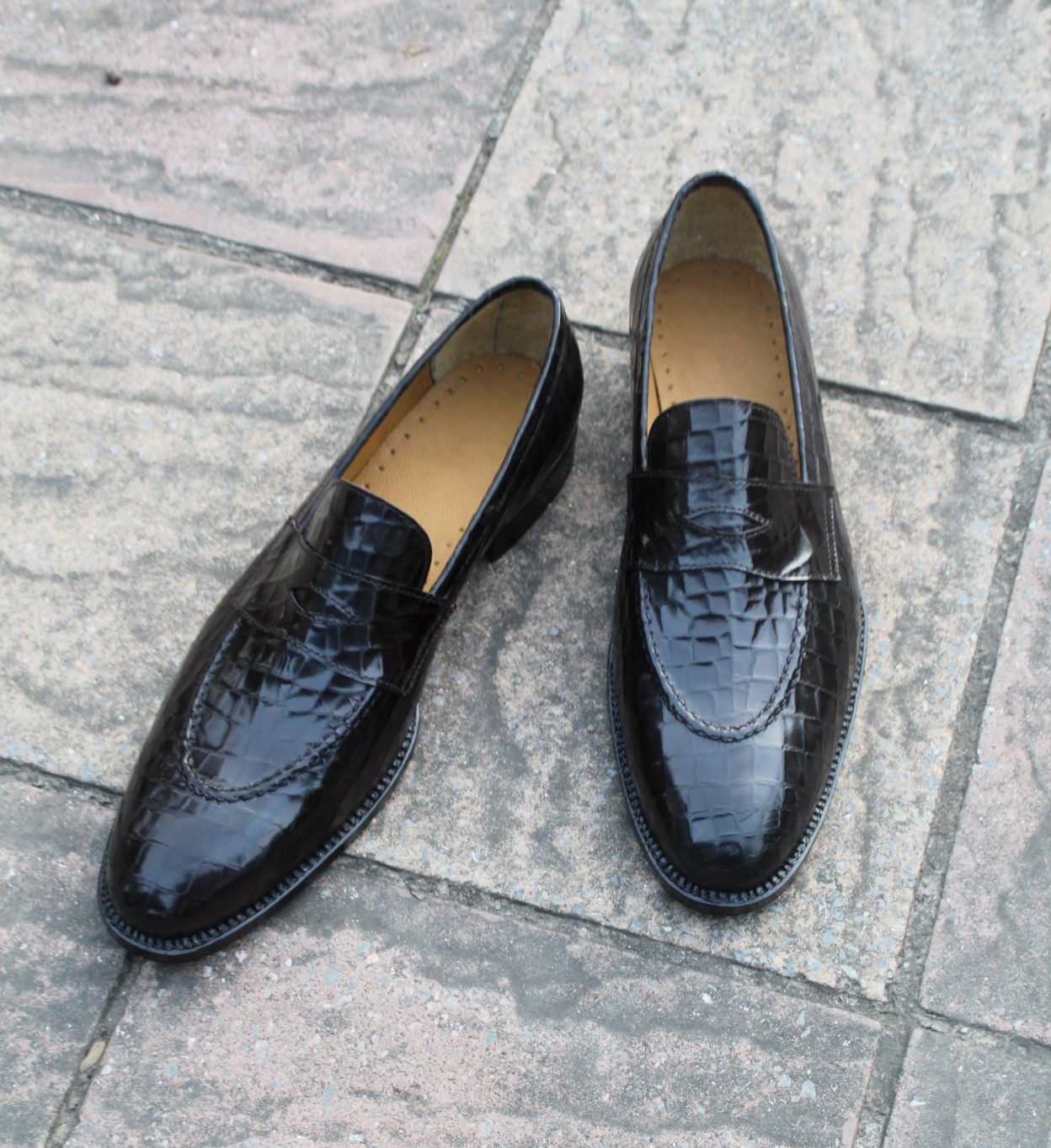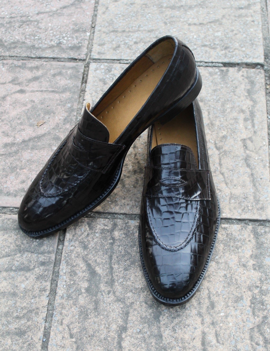 Crafted Leather Classic Crocodile Alligator Leather Moccasin Loafers Dress Shoes