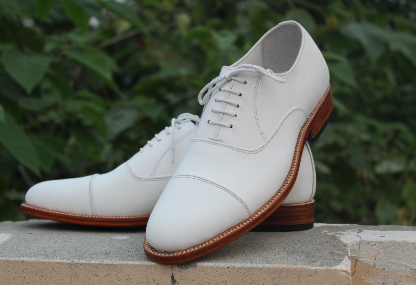 Inner: Soft Leather Sole: Leather Gender : Male Heel: Leather Color: White Style: Dress Shoes Lining Soft Calf Leather Lining Totally Hand stitched Manufacturing time 7-10 business days If you can’t find your Size/Colorjust send us message we will make for you.