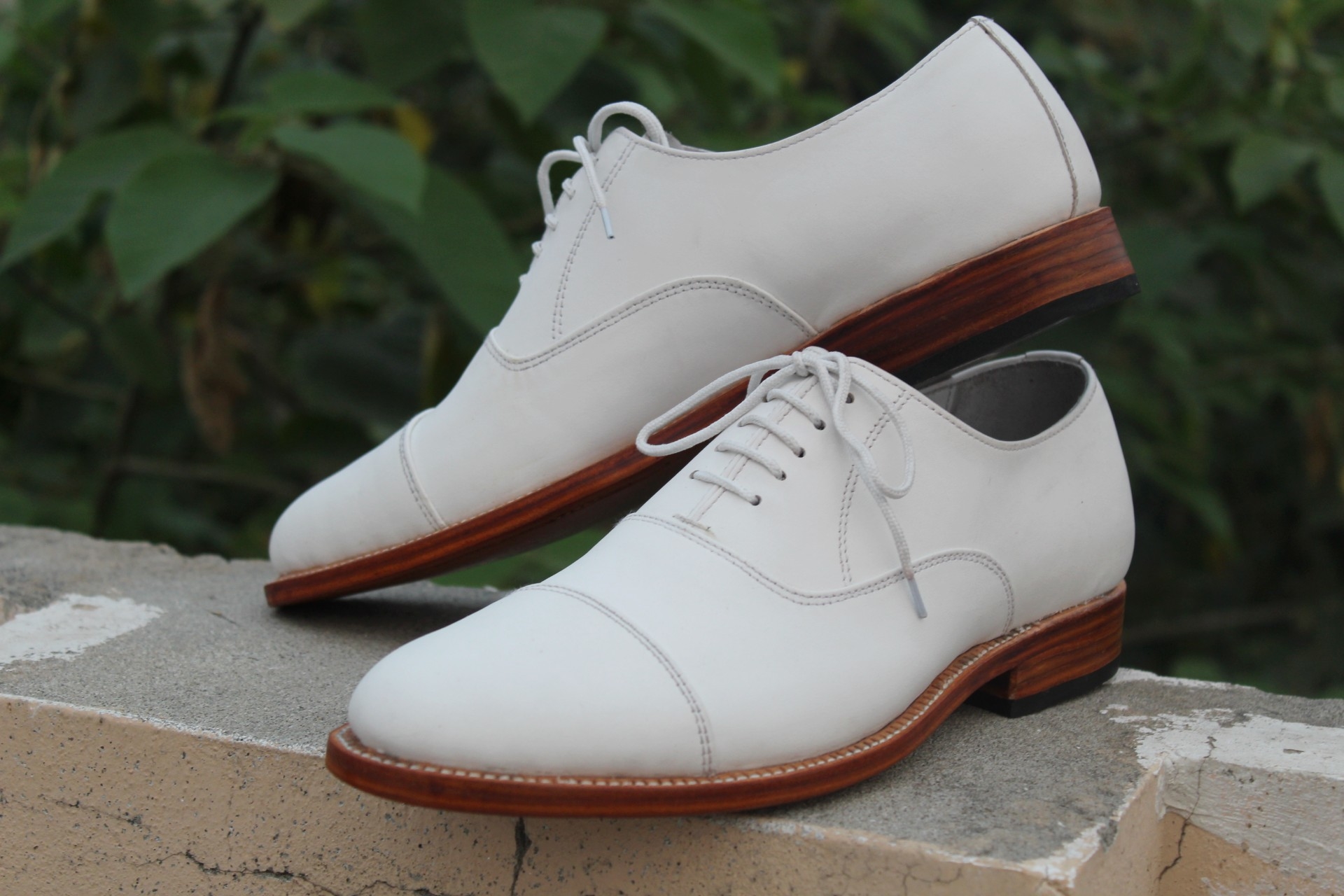 Crafted Leather Classic Men White Leather Oxford Lace up Dress Shoes