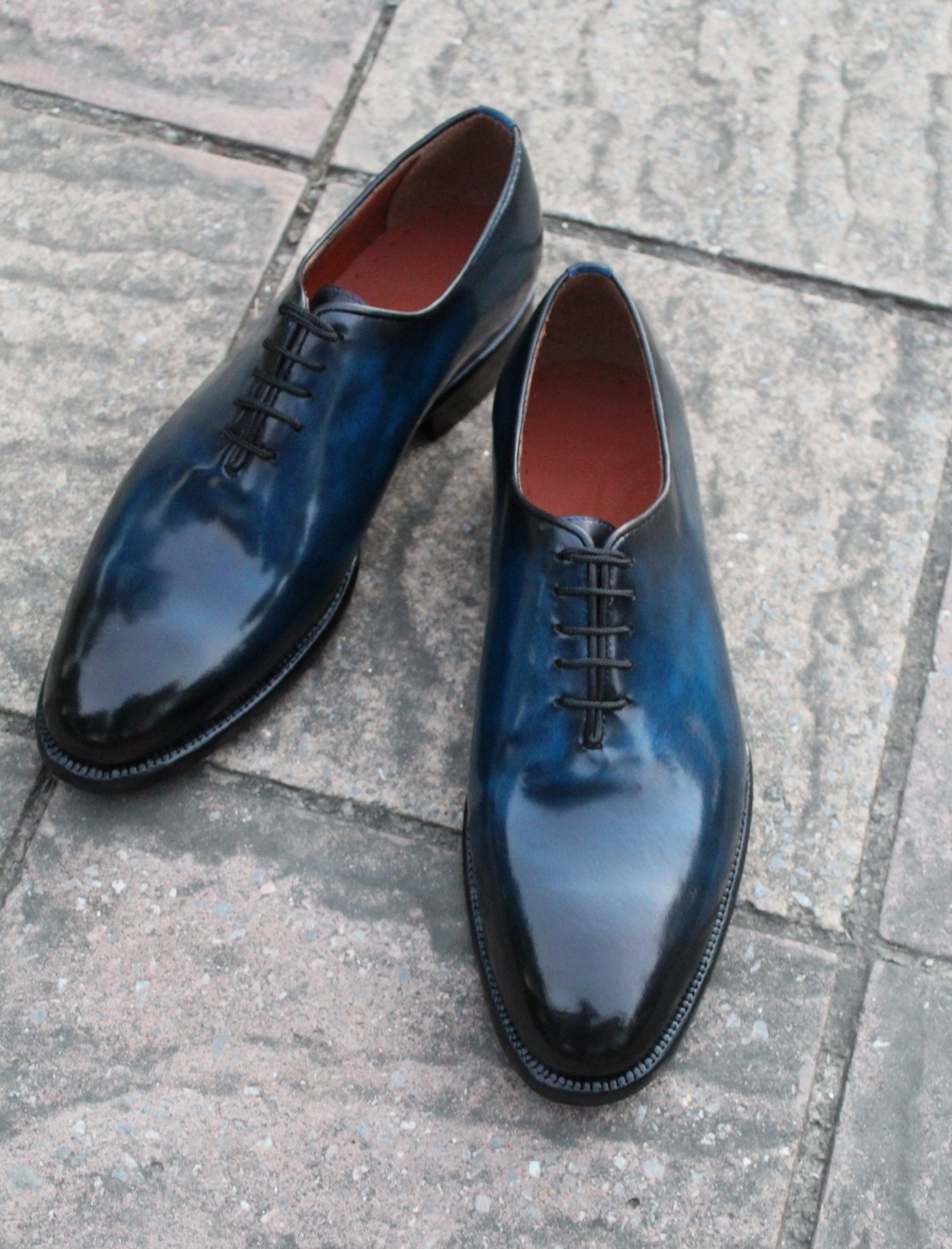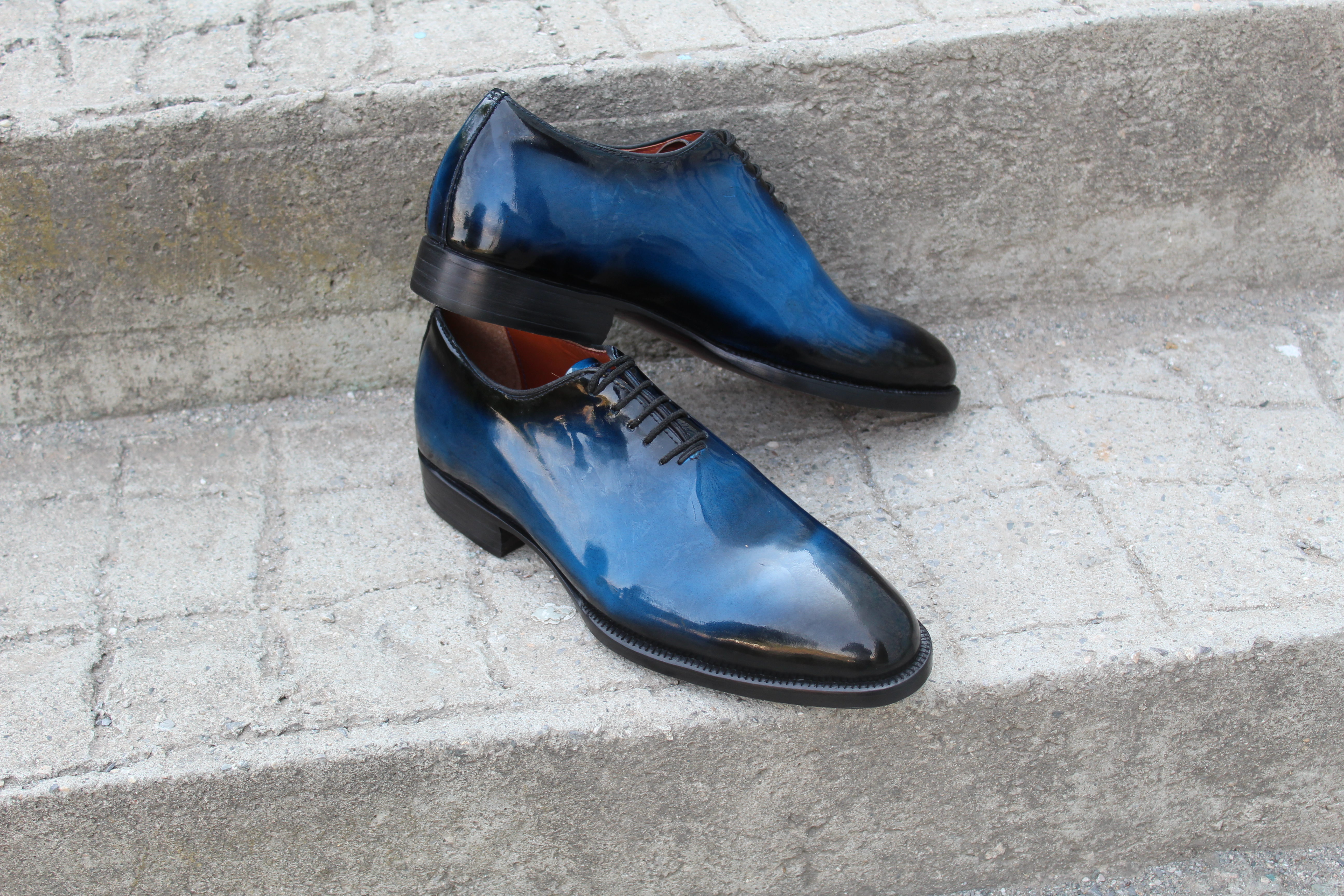 Inner: Soft Leather Sole: Leather Gender : Male Heel: Leather Color: Blue Style: Dress Shoes Lining Soft Calf Leather Lining Totally Hand stitched Manufacturing time 7-10 business days If you can’t find your Size/Colorjust send us message we will make for you.