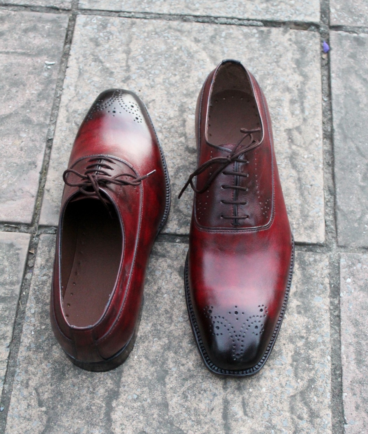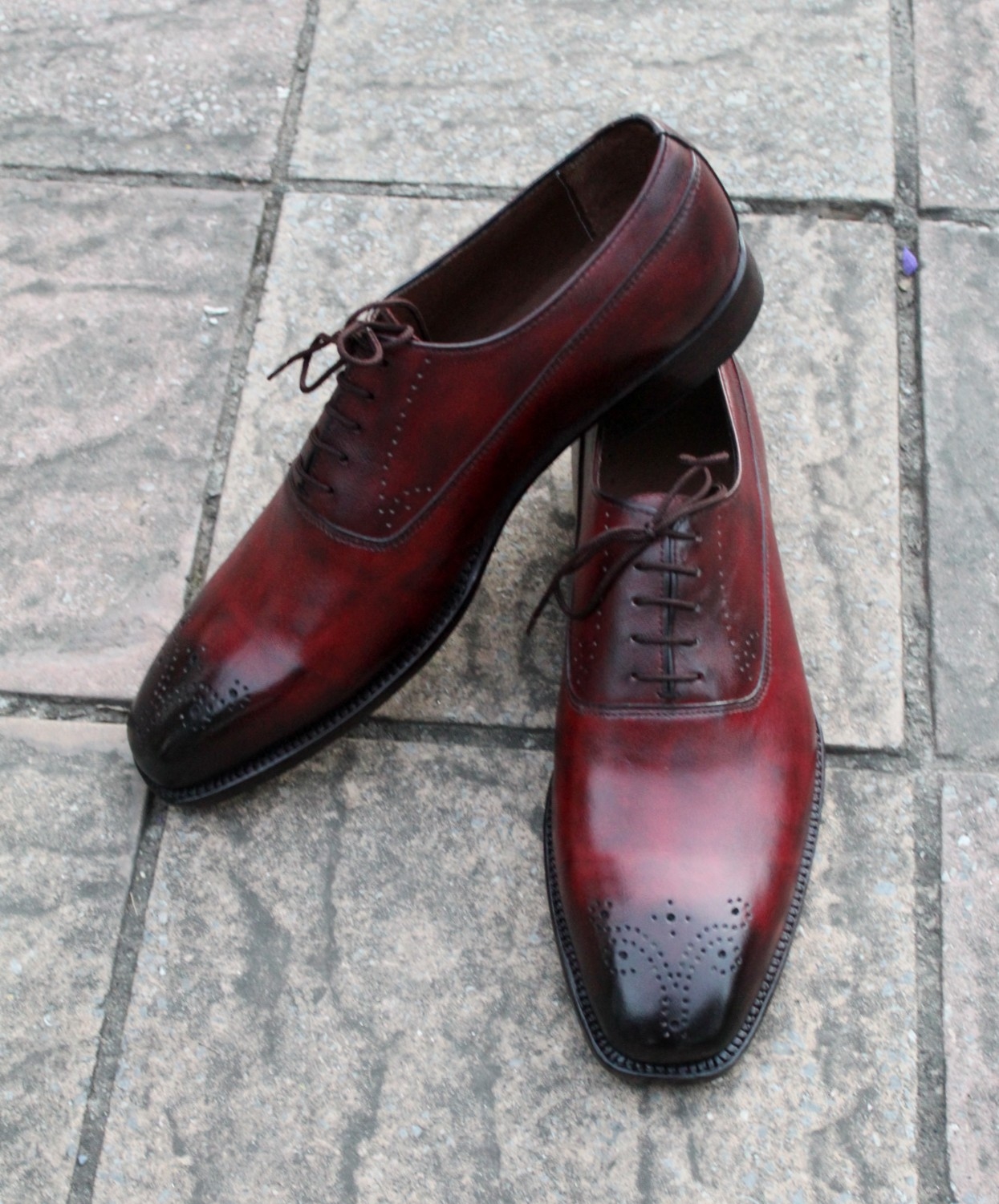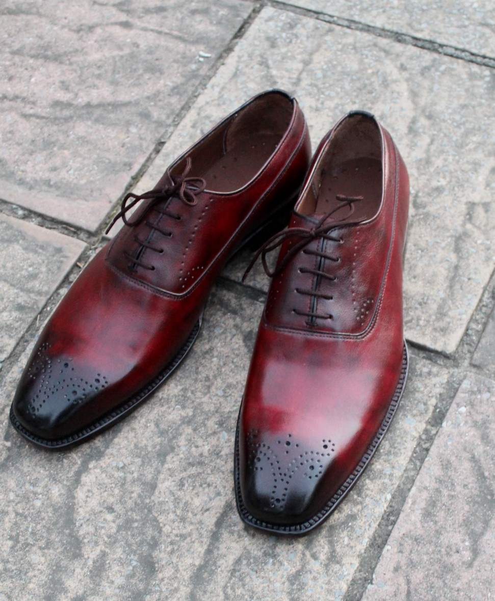 Crafted Leather Classic Men Burgundy Leather Oxford Lace up Dress Shoes