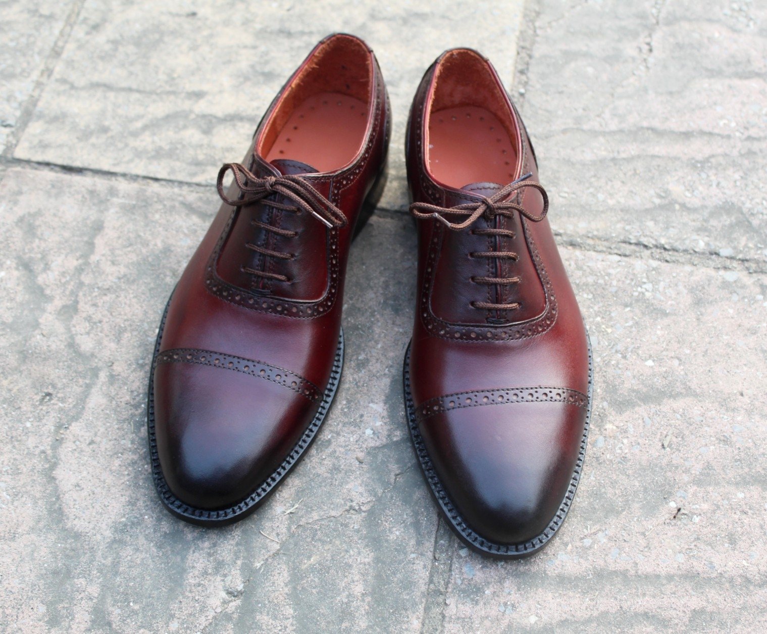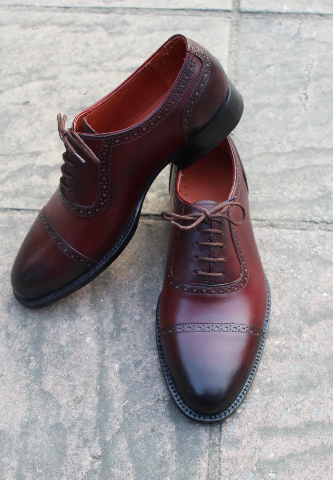 Crafted Leather Classic Men Burgundy Leather Oxford Lace up Dress Shoes