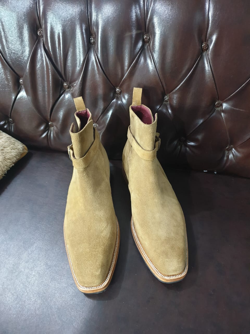 Crafted Leather Classic Bespoke Shoes Tan Suede Leather Jodhpur Strap Dress Boot