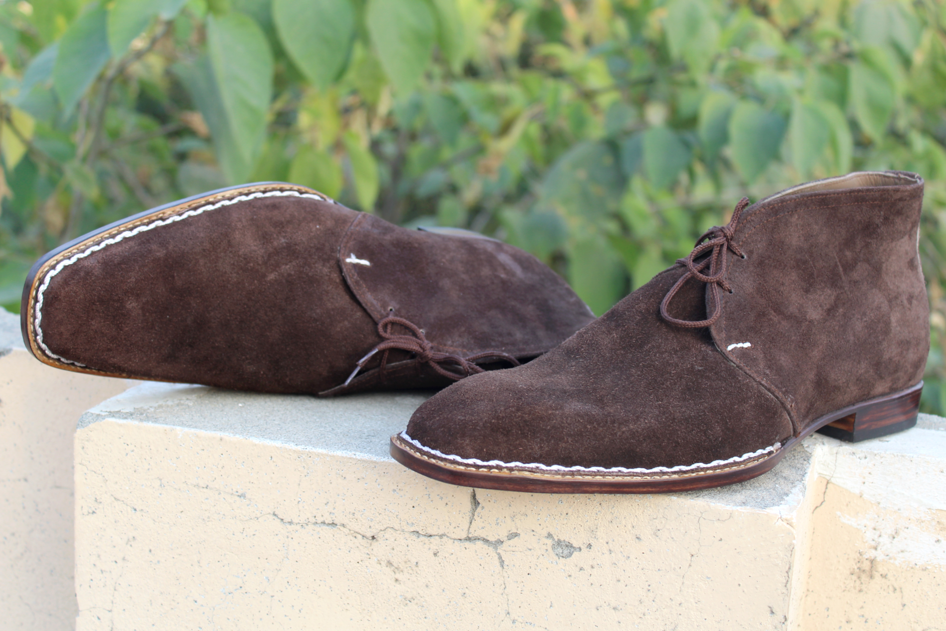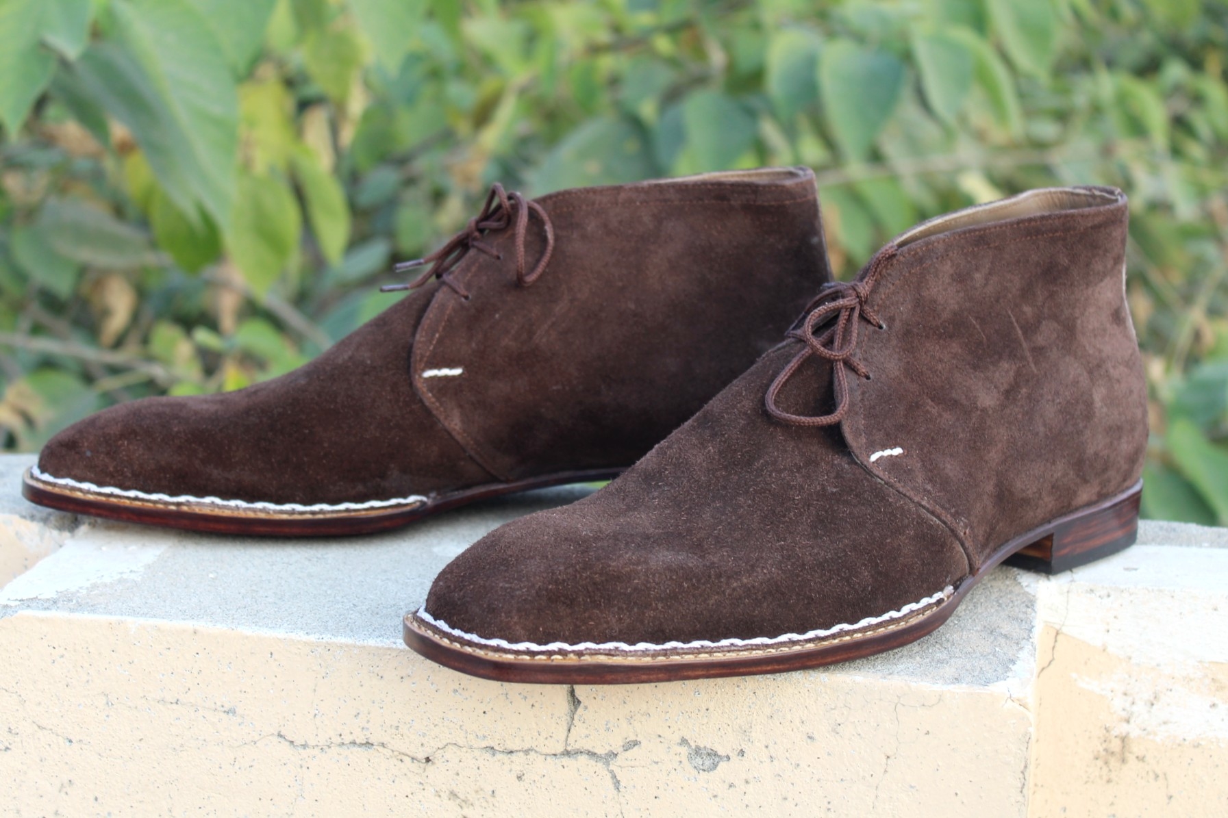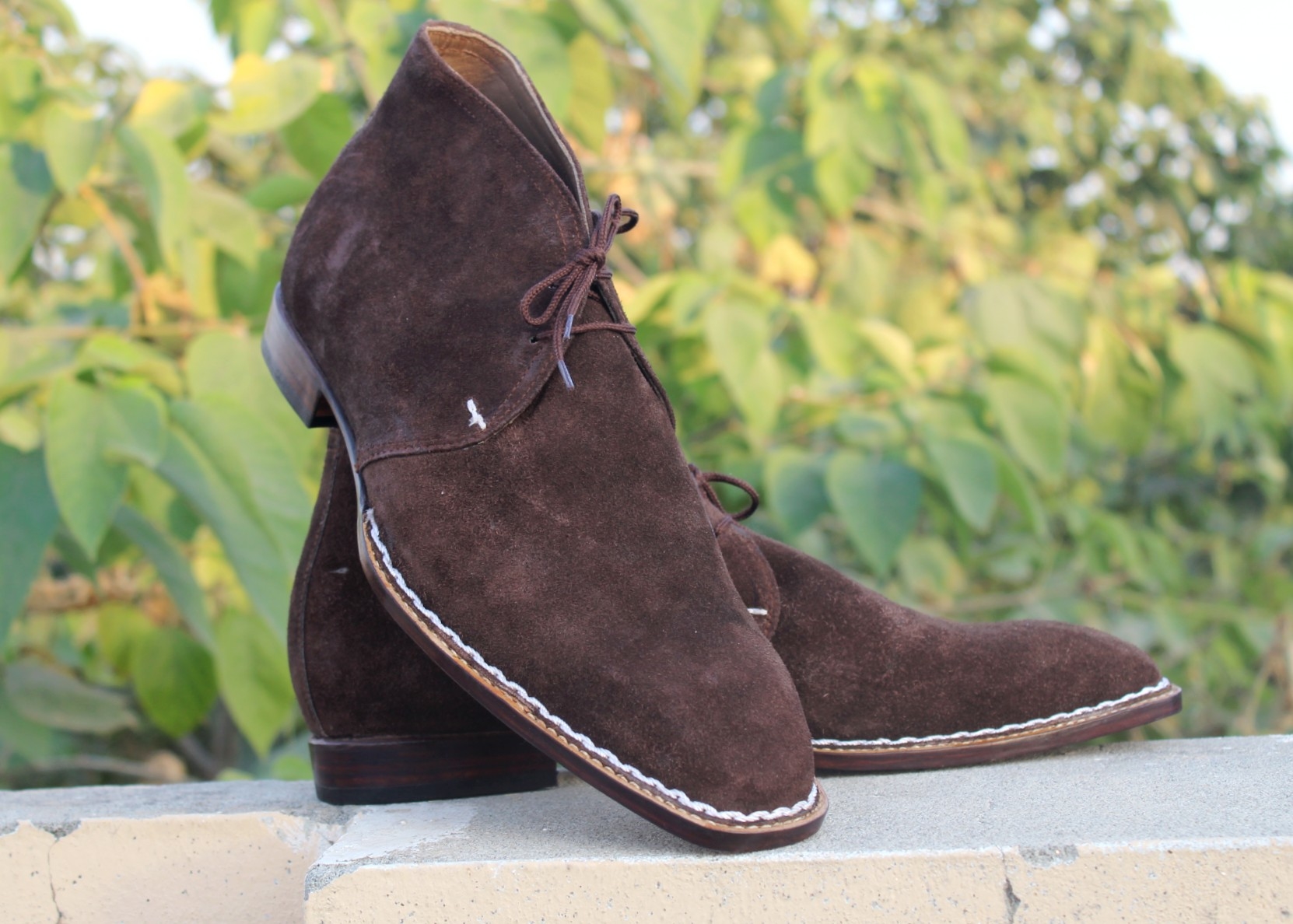 Crafted Leather Handmade Classic Dress Shoes Brown Suede Leather Chukka Lace up Boot