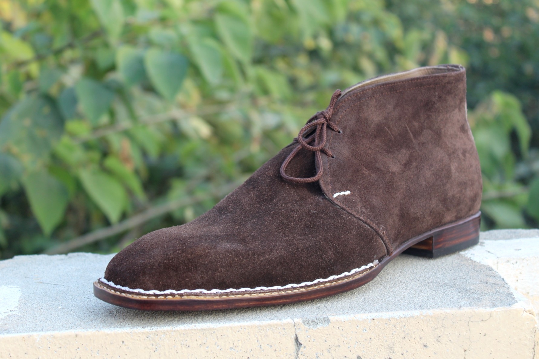 Inner: Soft Leather Sole: Leather Gender : Male Heel: Leather Color: Brown Style: Chukka Boot Lining Soft Calf Leather Lining Totally Hand stitched Manufacturing time 7-10 business days If you can’t find your Size/Colorjust send us message we will make for you.