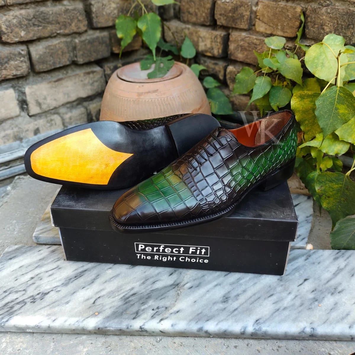 Crafted Leather Handmade Men Green Patina Crocodile/Alligator Leather Dress Shoes