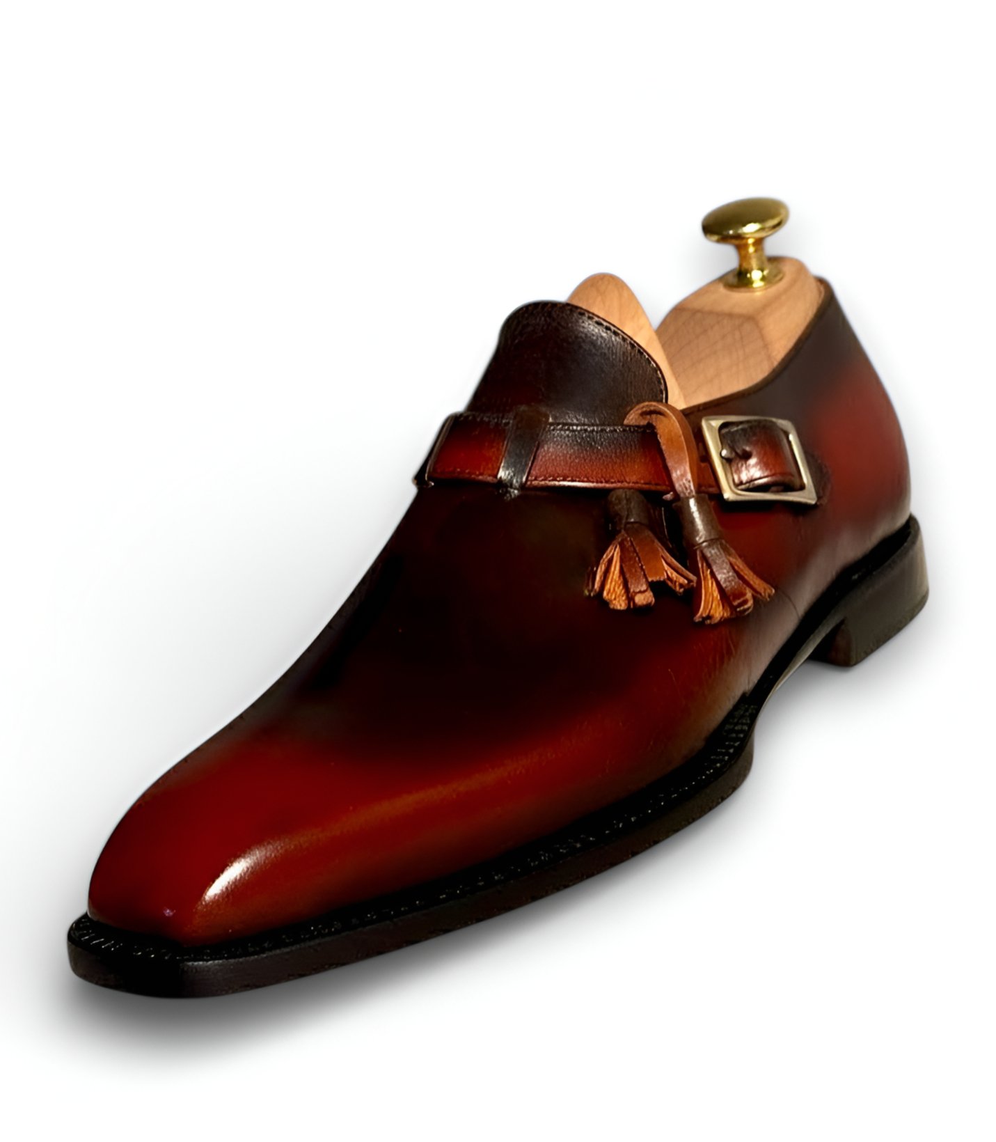 Crafted Leather Handmade Brown Monk Strap Dress Shoes