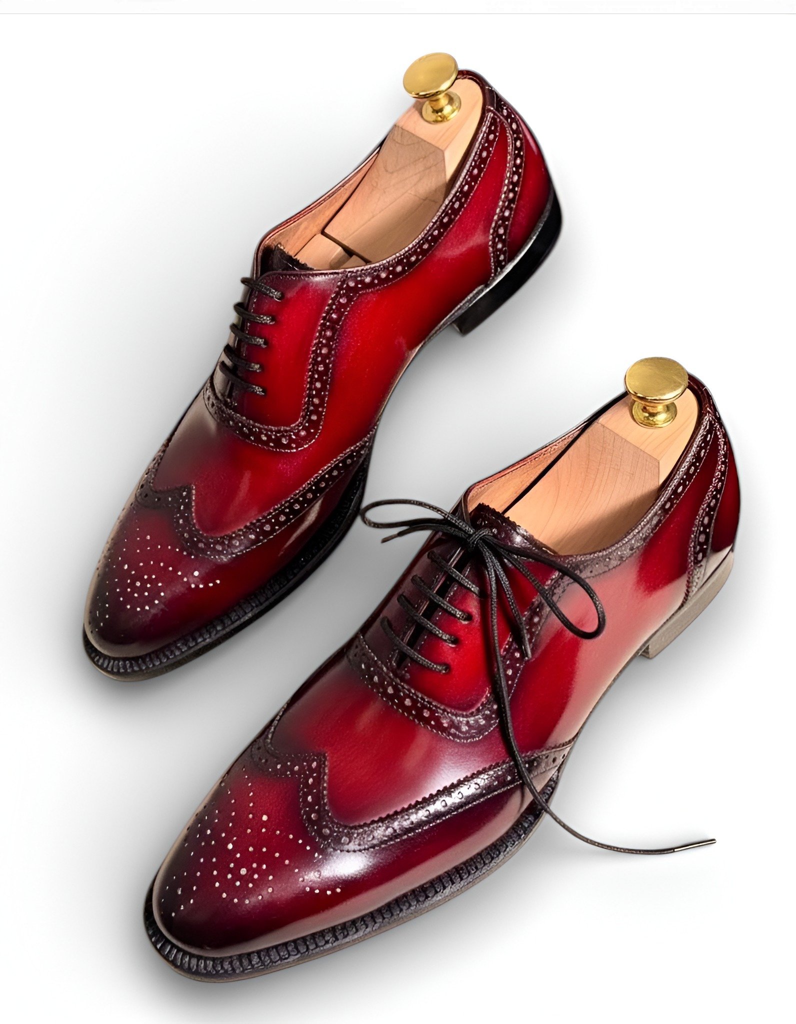 Crafted Leather Handmade Burgundy Wingtip Men Classic Oxford Lace up Dress Shoes