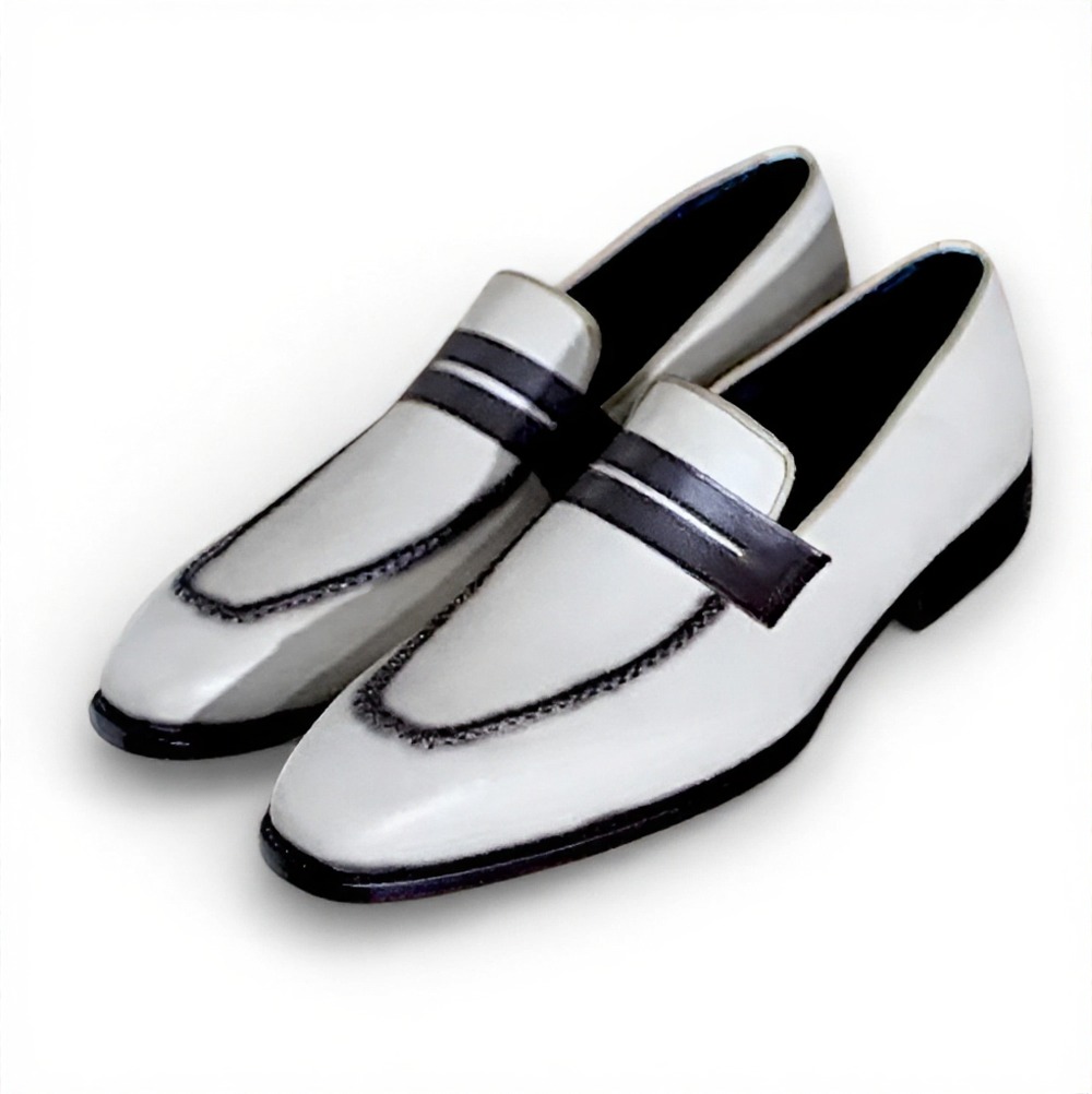 Crafted Leather Handmade White Leather Moccasin Loafers Dress Shoes