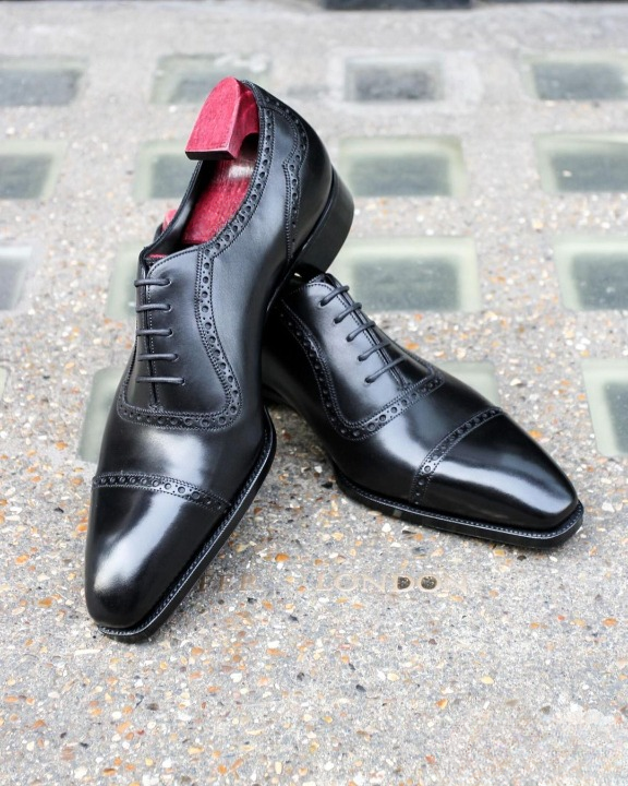 Handmade Men Genuine Black Calf Oxford Lace up Dress Shoes