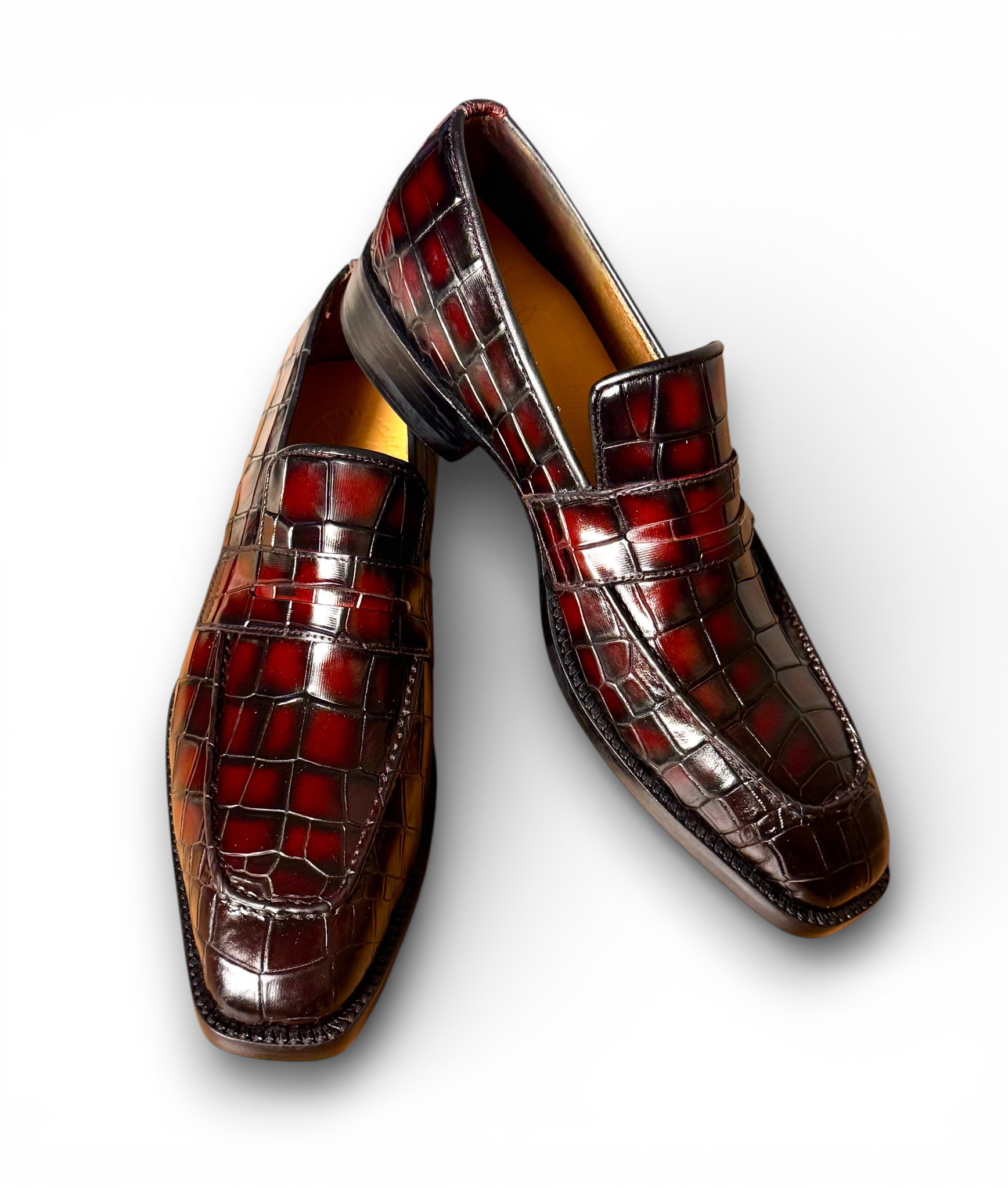 Crafted Leather Handmade Classic Burgundy Alligator/Crocodile Dress Shoes