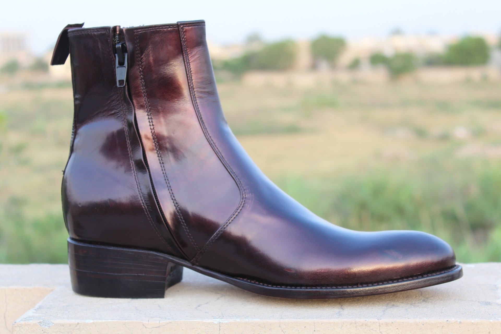 Inner: Soft Leather Sole: Leather Gender : Male Heel: Leather Color: Brown Style: Fashion Glassy Boots Totally Hand stitched Manufacturing time 7-10 business days If you can’t find your Size/Colorjust send us message we will make for you.