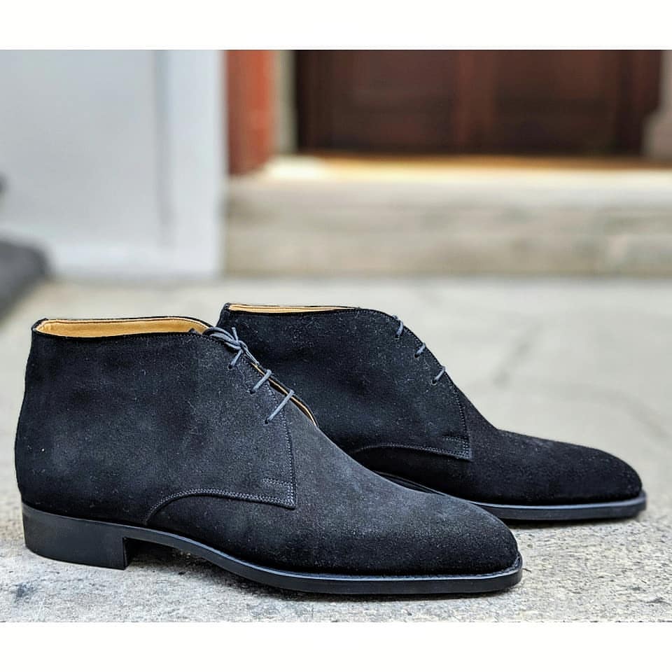Handmade Men Black Suede Leather Classic Chukka Boot