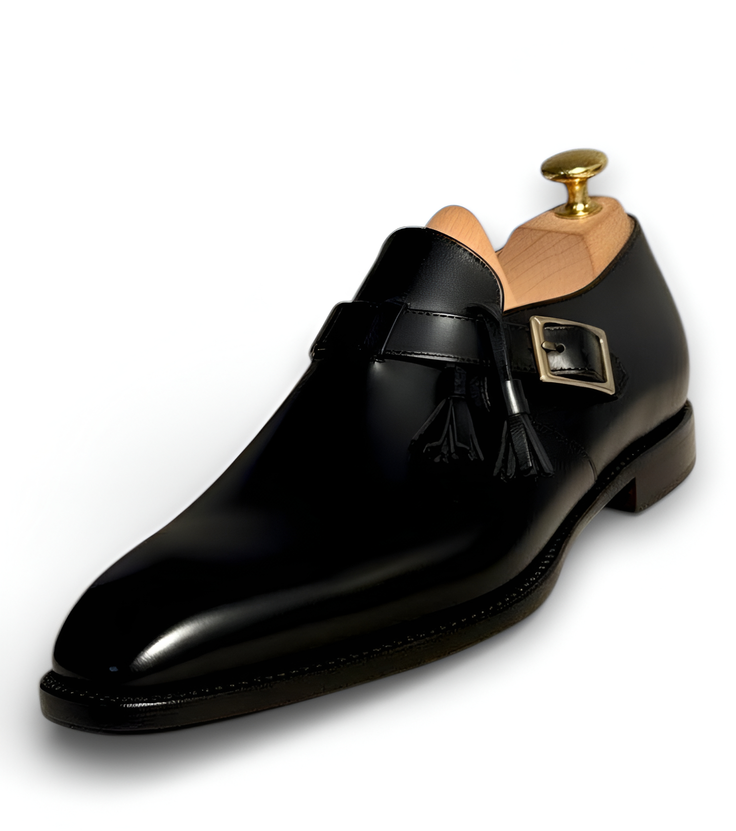 Crafted Leather Handmade Black Leather Monk Strap Dress Shoes
