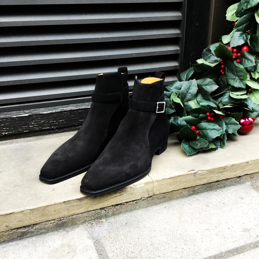 Handmade Men Black Suede Leather Jodhpur Strap Boot