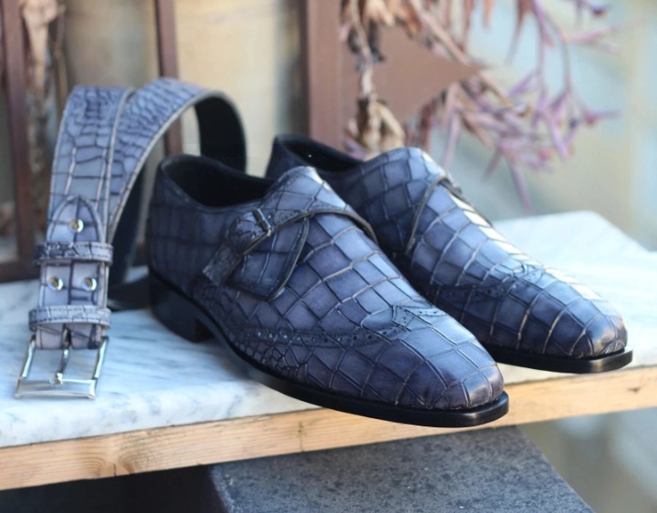 Inner: Soft Leather Sole: Leather Gender : Male Heel: Leather Color: Gray Style: Wingtip Monk Shoes Lining Soft Calf Leather Lining Totally Hand stitched Manufacturing time 7-10 business days If you can’t find your Size/Colorjust send us message we will make for you.