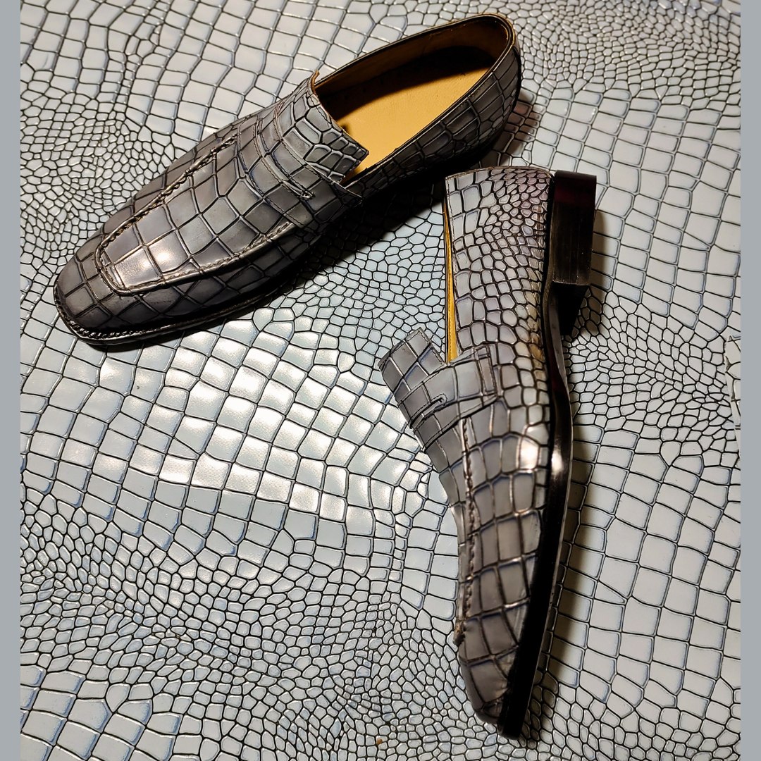 Crafted Leather Handmade Classic Gray Crocodile/Alligator Leather Dress Shoes