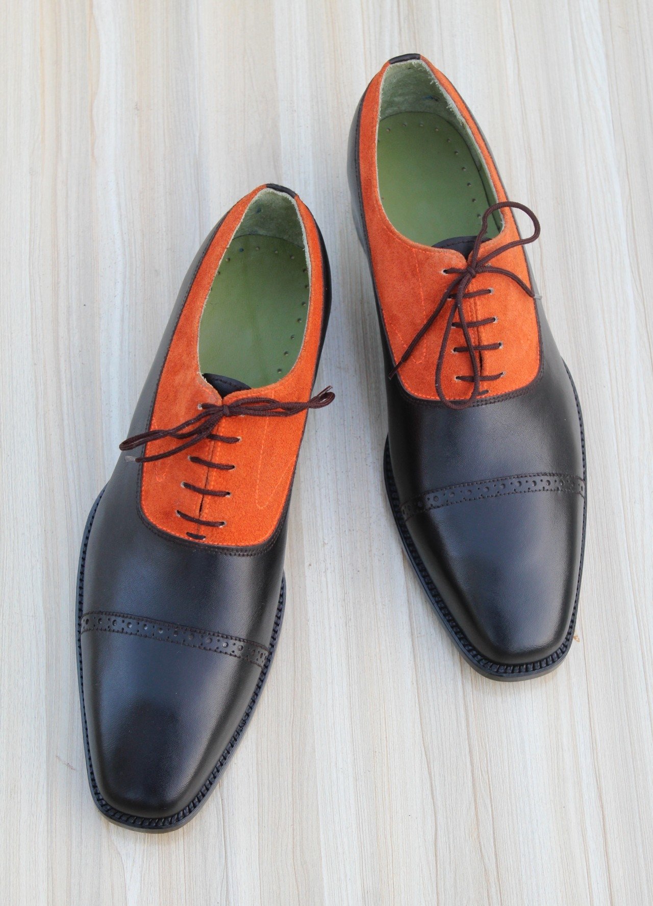 Inner: Soft Leather Sole: Leather Gender : Male Heel: Leather Color: Same as Pic Style: Oxford Shoes Lining Soft Calf Leather Lining Totally Hand stitched Manufacturing time 7-10 business days If you can’t find your Size/Colorjust send us message we will make for you.