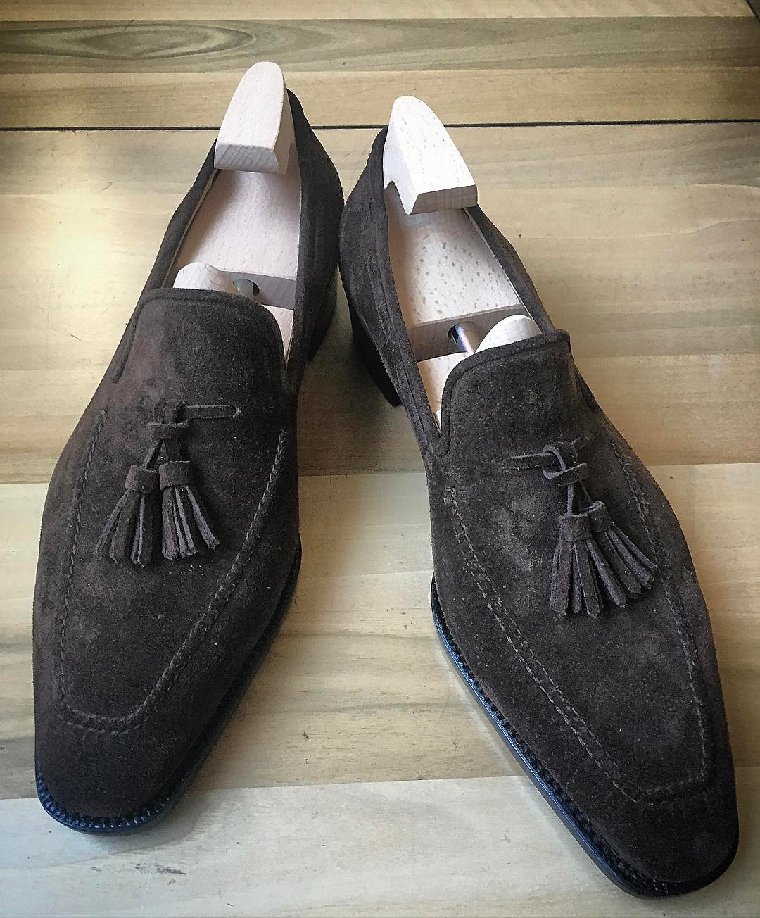 Handmade Men Dark Brown Suede Leather Tassel Loafers Dress Shoes