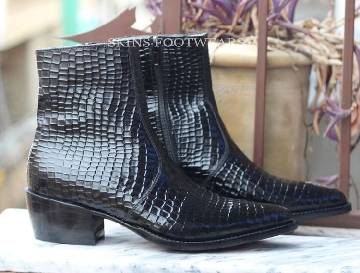 Crafted Leather Classic Black Crocodile Skin Leather Side Zipper Jodhpur Boot
