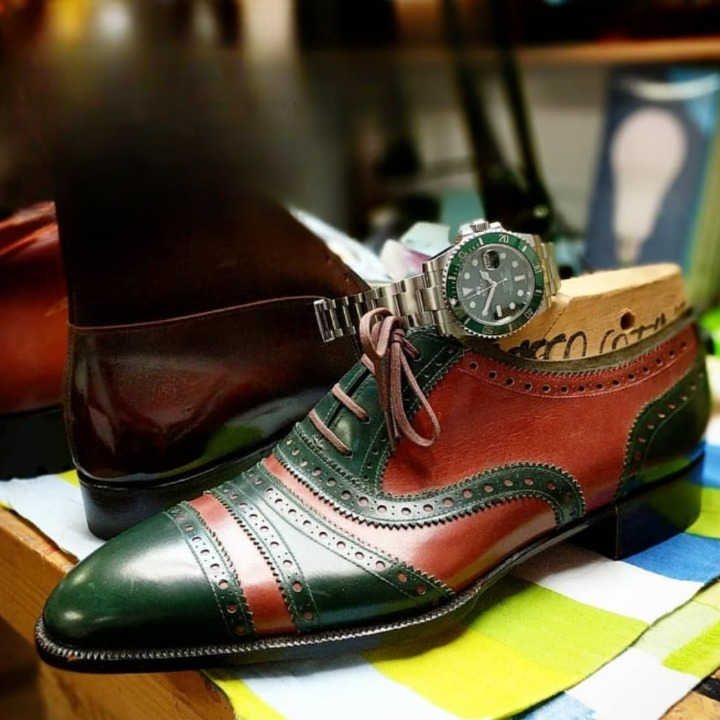 Inner: Soft Leather Sole: Leather Gender : Male Heel: Leather Color: Red Black Style: Oxford Shoes Lining Soft Calf Leather Lining Totally Hand stitched Manufacturing time 7-10 business days If you can’t find your Size/Colorjust send us message we will make for you.
