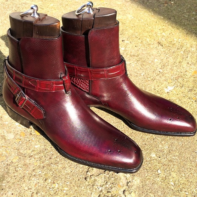 Handmade Men Burgundy Crocodile Strap Leather Jodhpur Boot