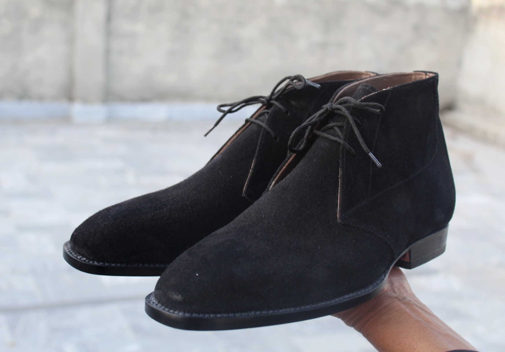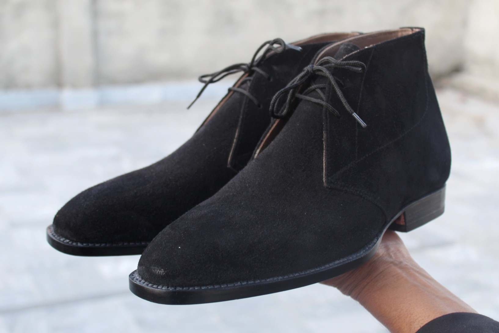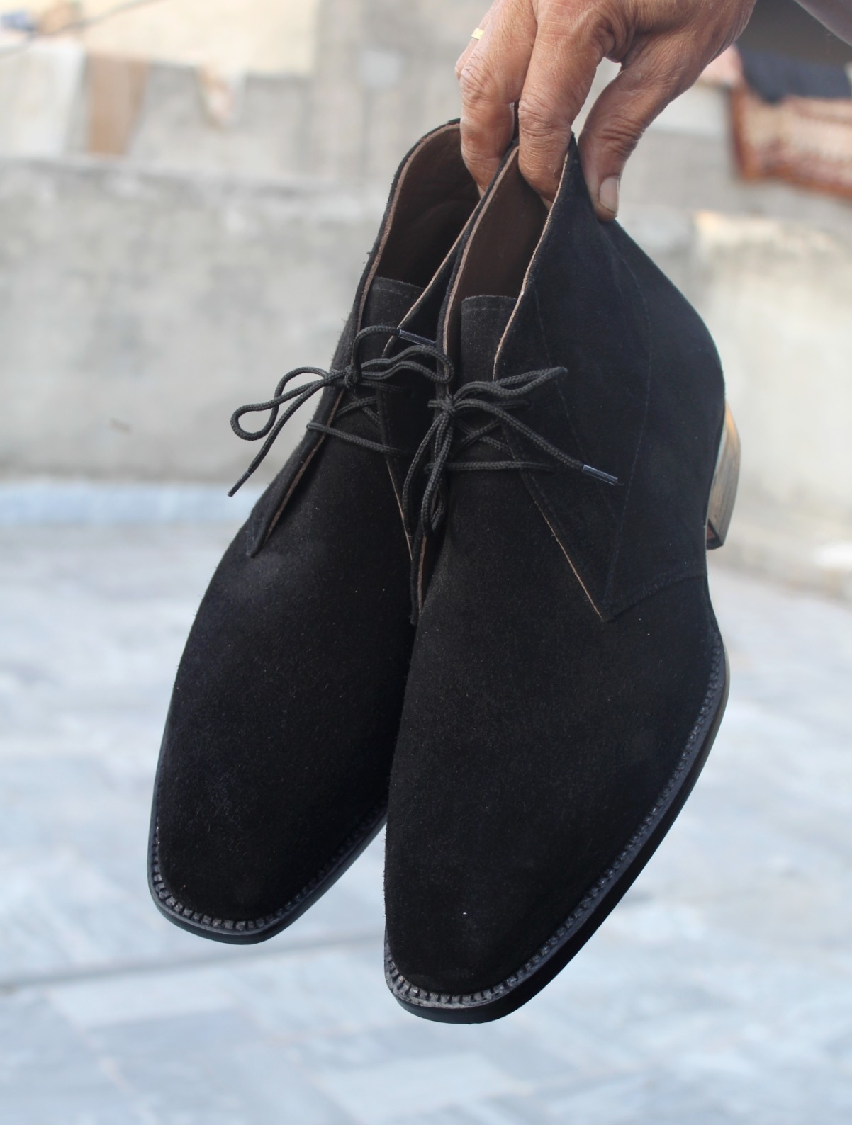 Handmade Men Black Suede Leather Chukka Lace up Dress Boot