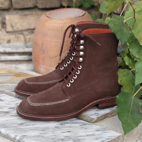 Crafted Leather Brown Suede Leather Ankle High Lace up Balmoral Dress Boot