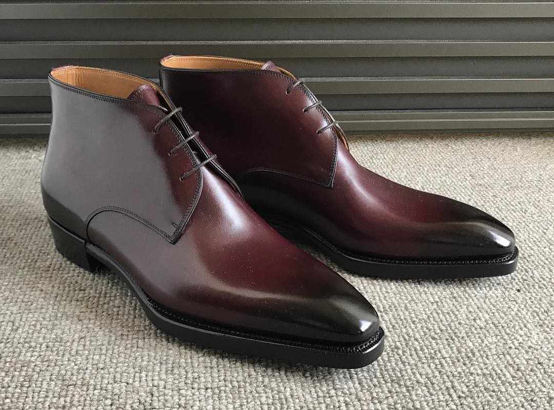 Inner: Soft Leather Sole: Leather Gender : Male Heel: Leather Color: Burgundy Style: Chukka Boot Lining Soft Calf Leather Lining Totally Hand stitched Manufacturing time 7-10 business days If you can’t find your Size/Colorjust send us message we will make for you.