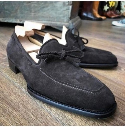 Handmade Men Genuine Suede Leather Tassel Loafers Dress Shoes