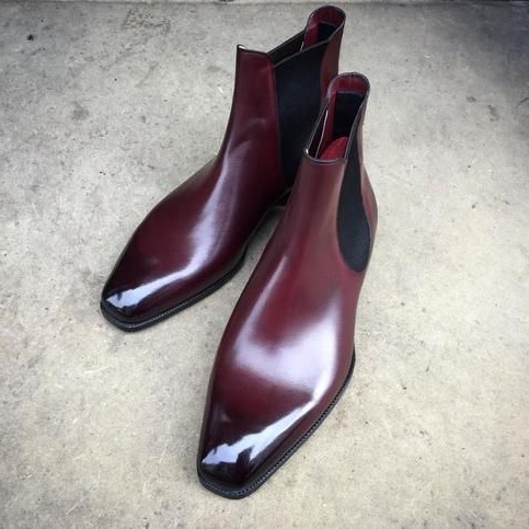Handmade Burgundy Calf Leather Chelsea Dress Boot For Men
