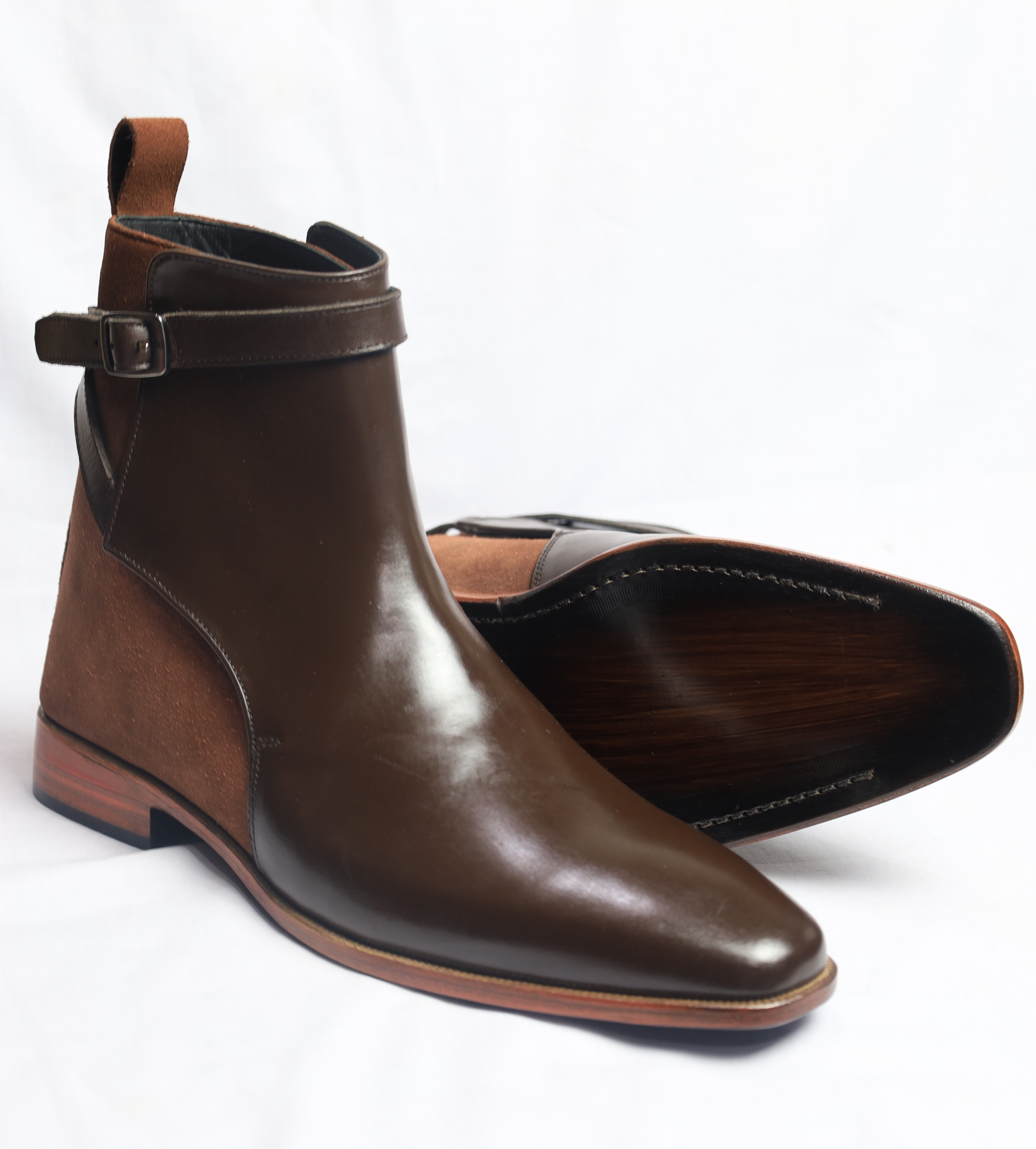 Crafted Leather Handmade Men Brown Suede Leather Chukka Style Buckle Dress Boot