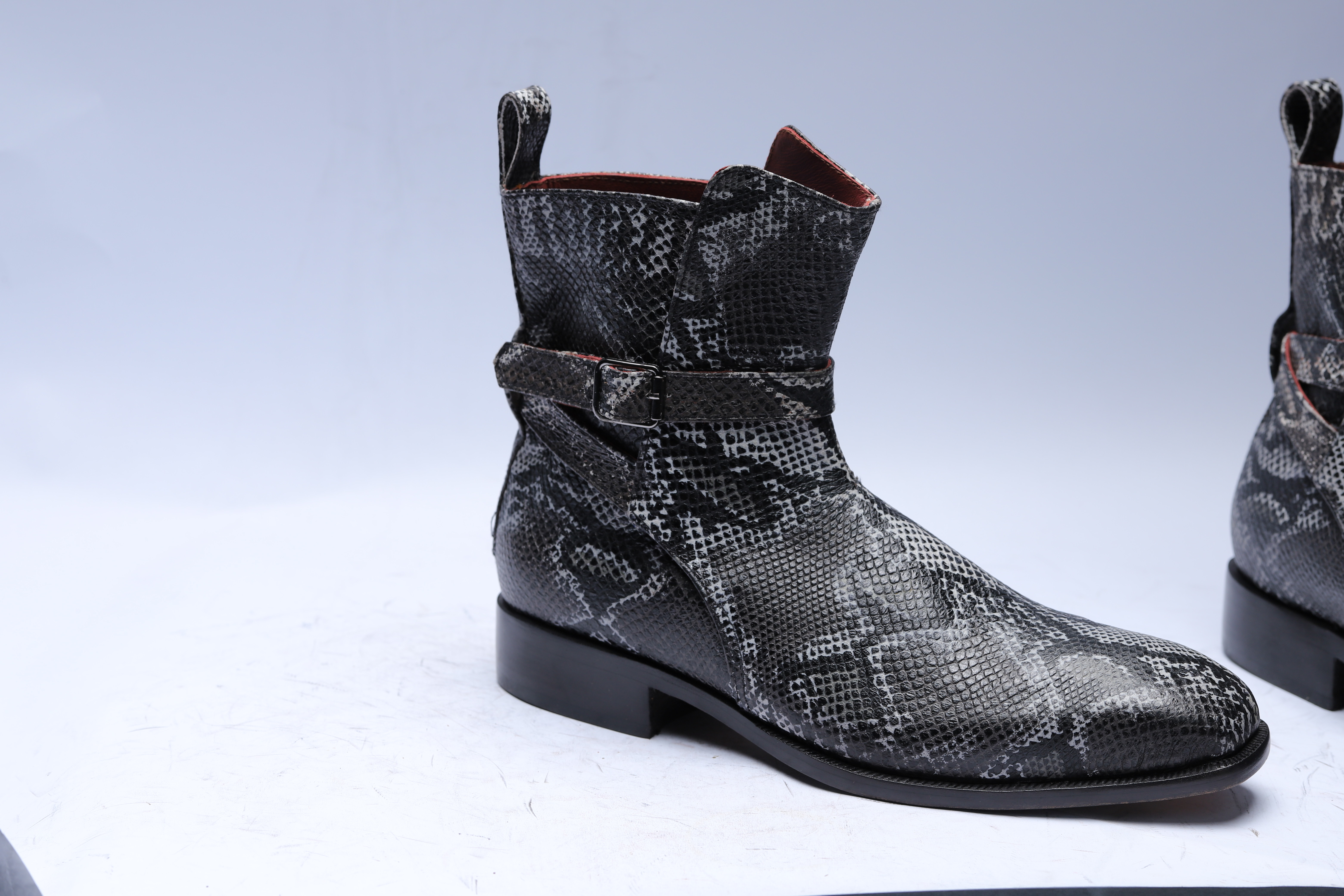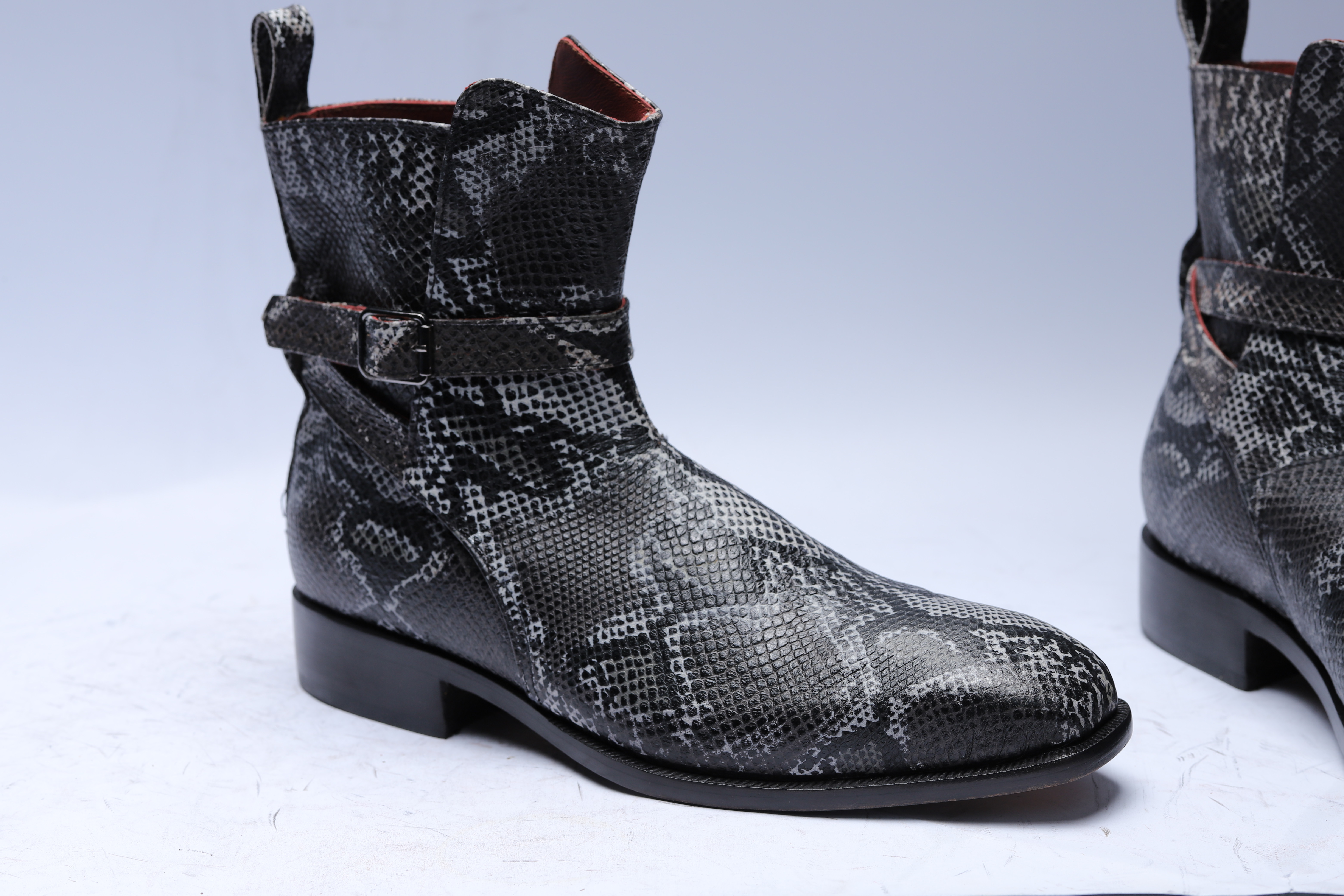 Crafted Leather Handmade Men Python Leather Buckle Strap Jodhpur Boot