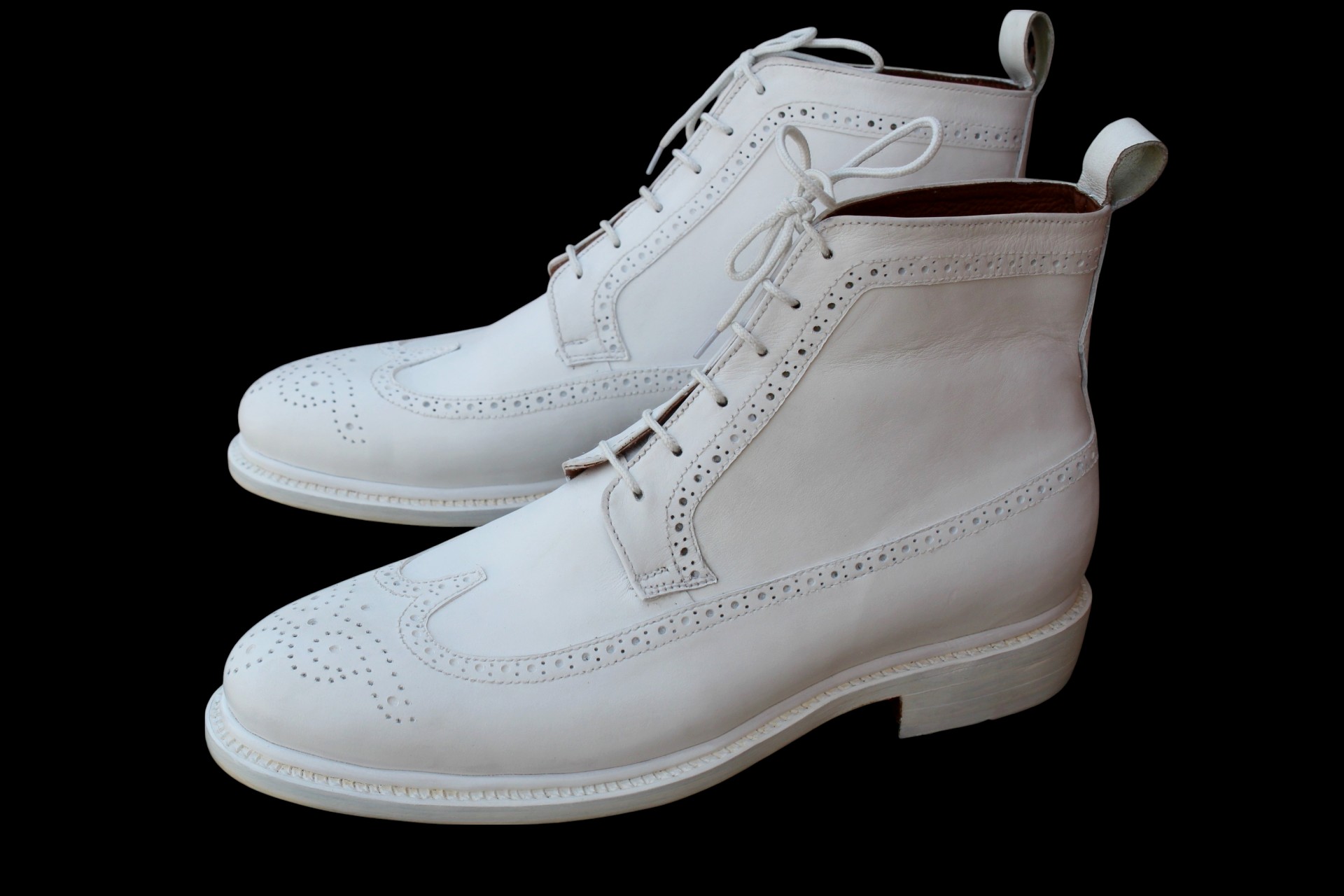 Crafted Leather Handmade Men Classic White Leather Ankle High Lace up Wingtip Dress Boot