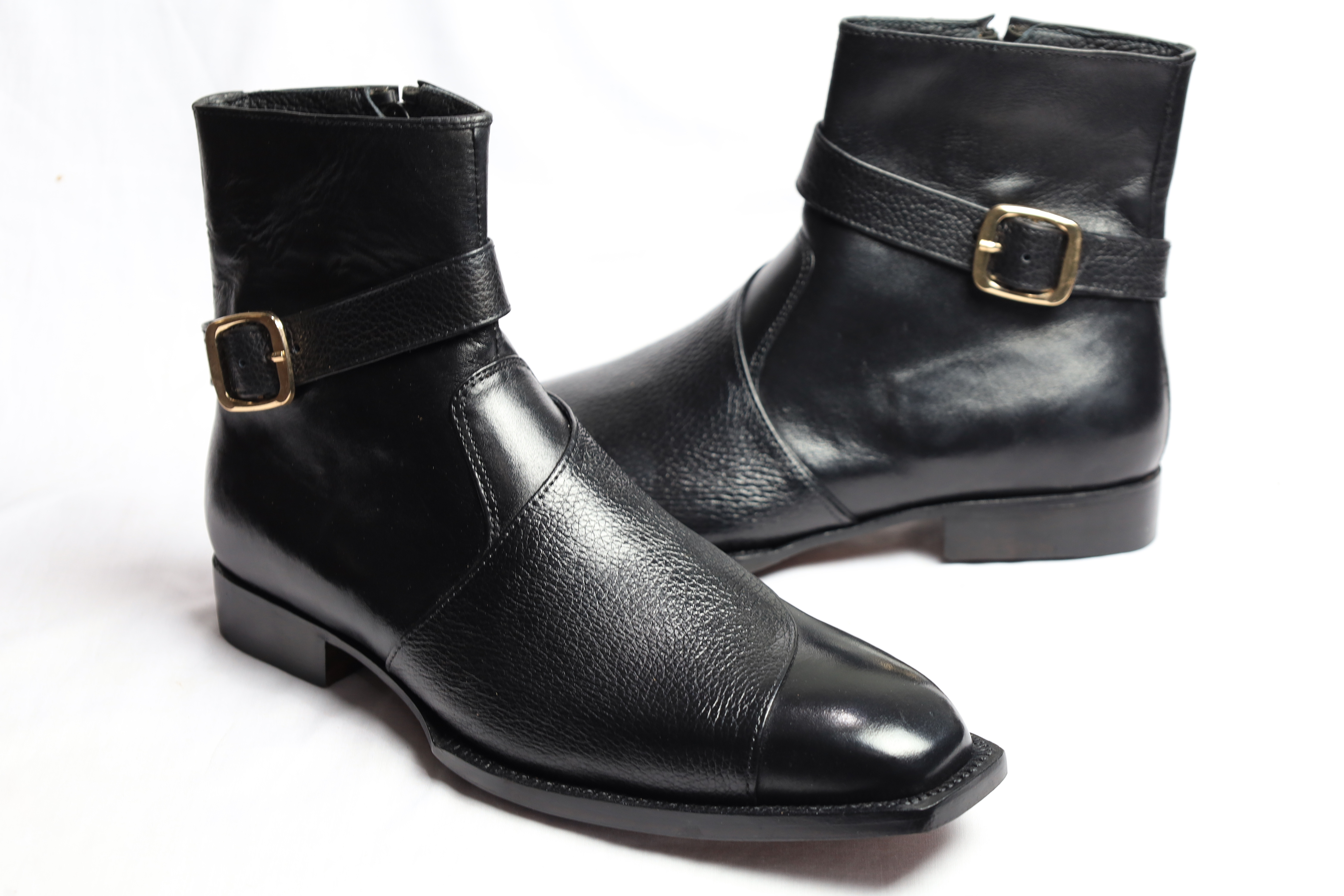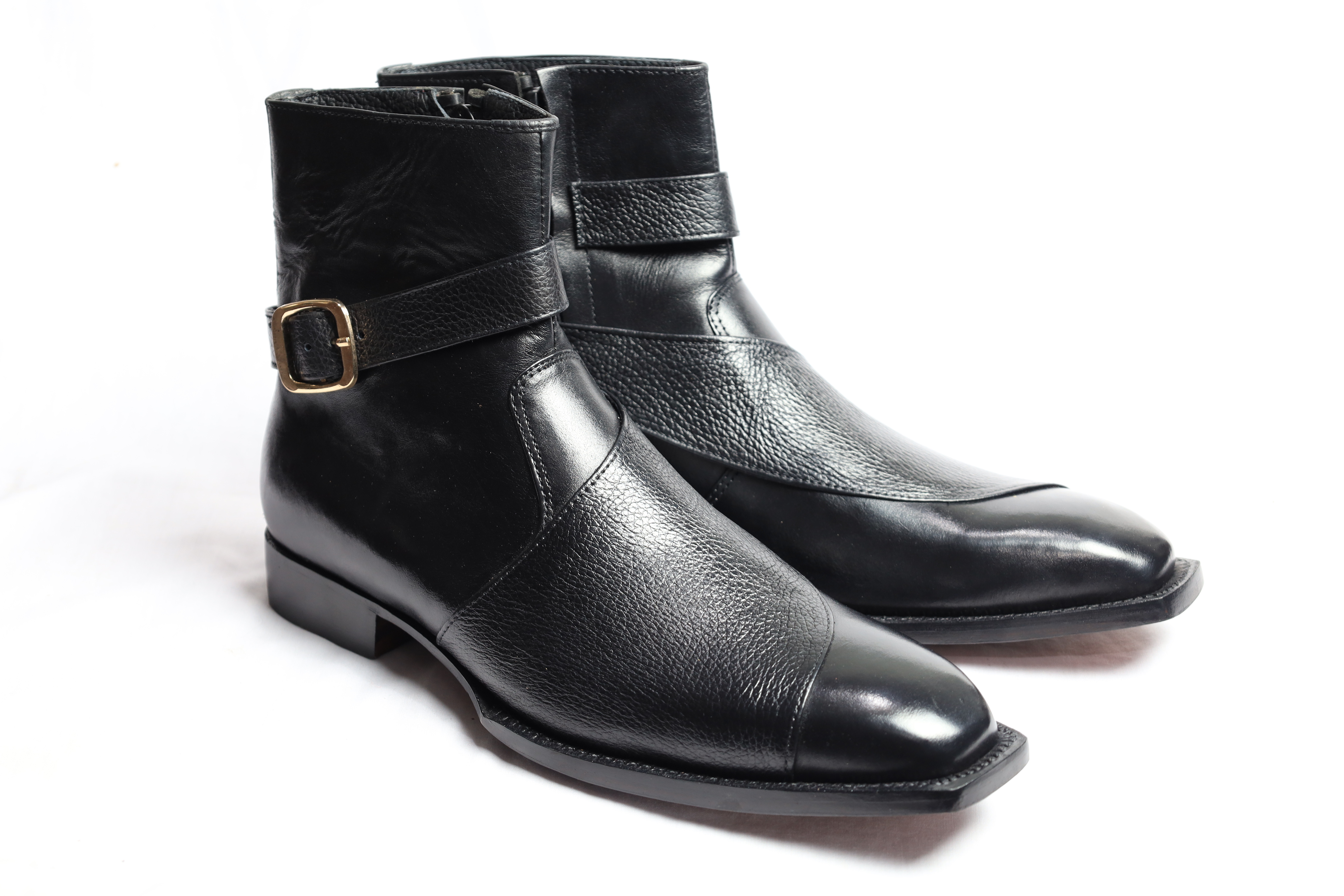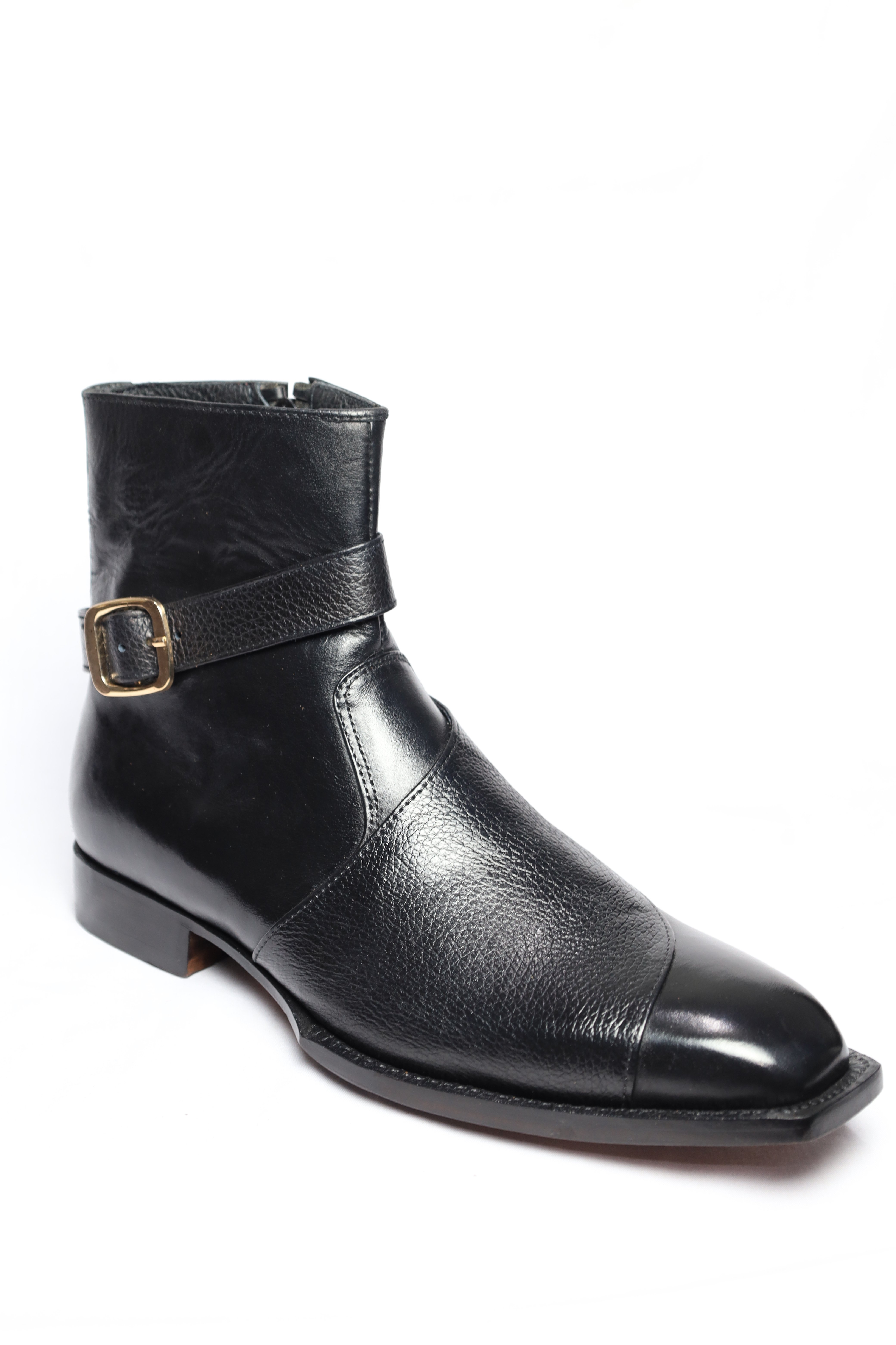 Crafted Leather Handmade Men Black Leather Chukka Style Buckle Strap Dress Boot