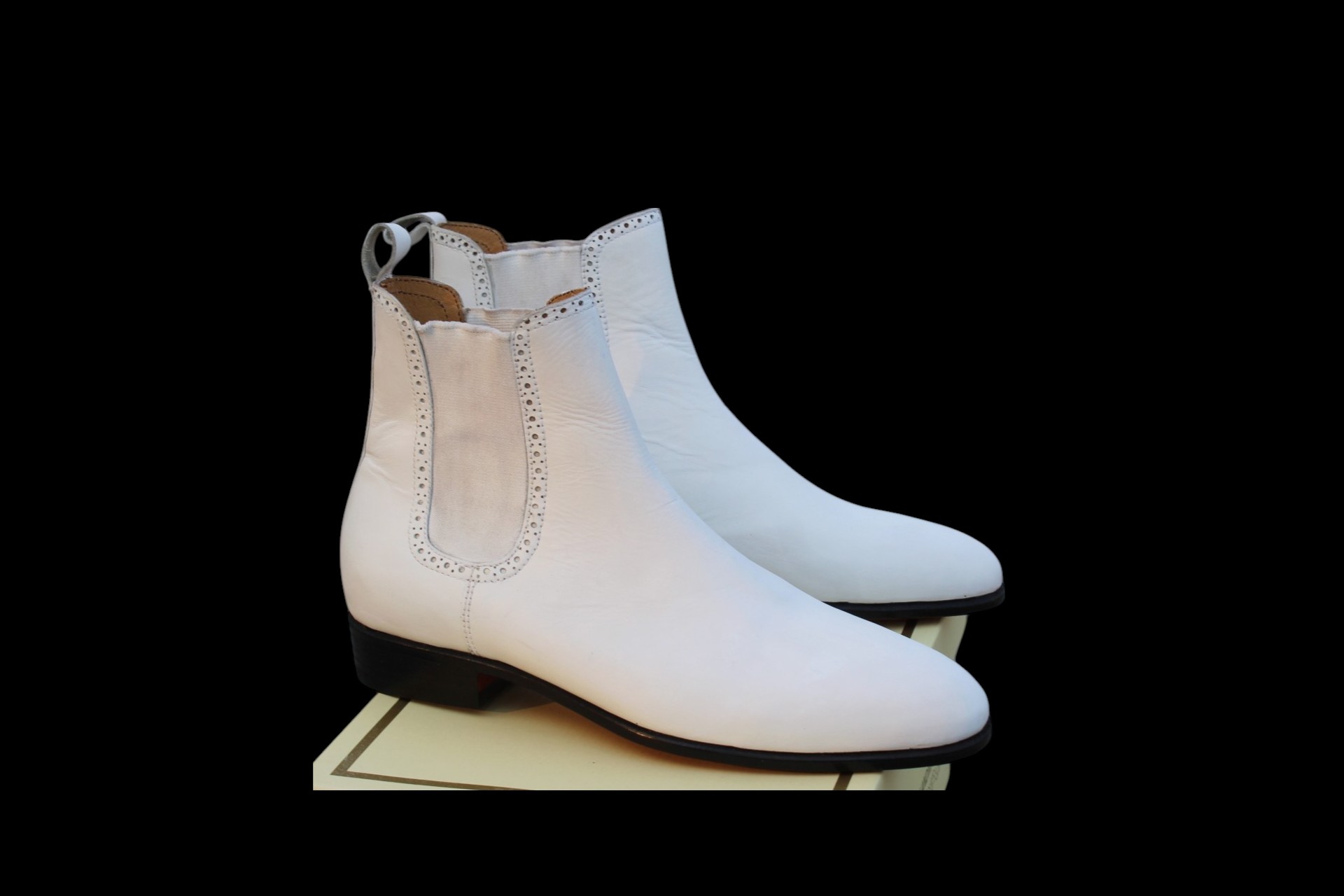 Inner: Soft Leather Sole: Leather Gender : Male Heel: Leather Color: White Style: Chelsea Boot Lining Soft Calf Leather Lining Totally Hand stitched Manufacturing time 7-10 business days If you can’t find your Size/Colorjust send us message we will make for you.