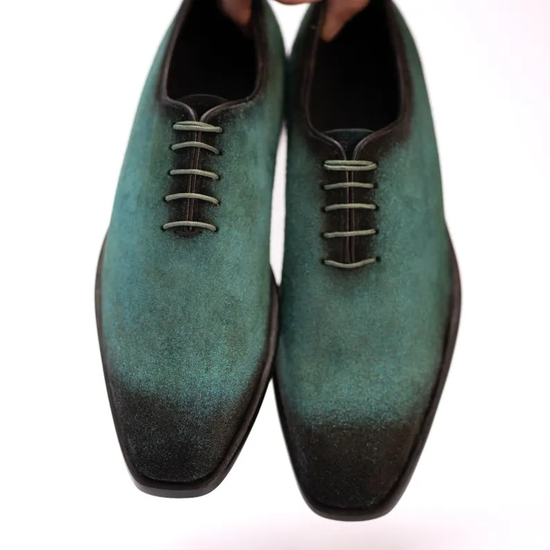 Crafted Leather Classic Aqua Green Suede Leather Dress Shoes