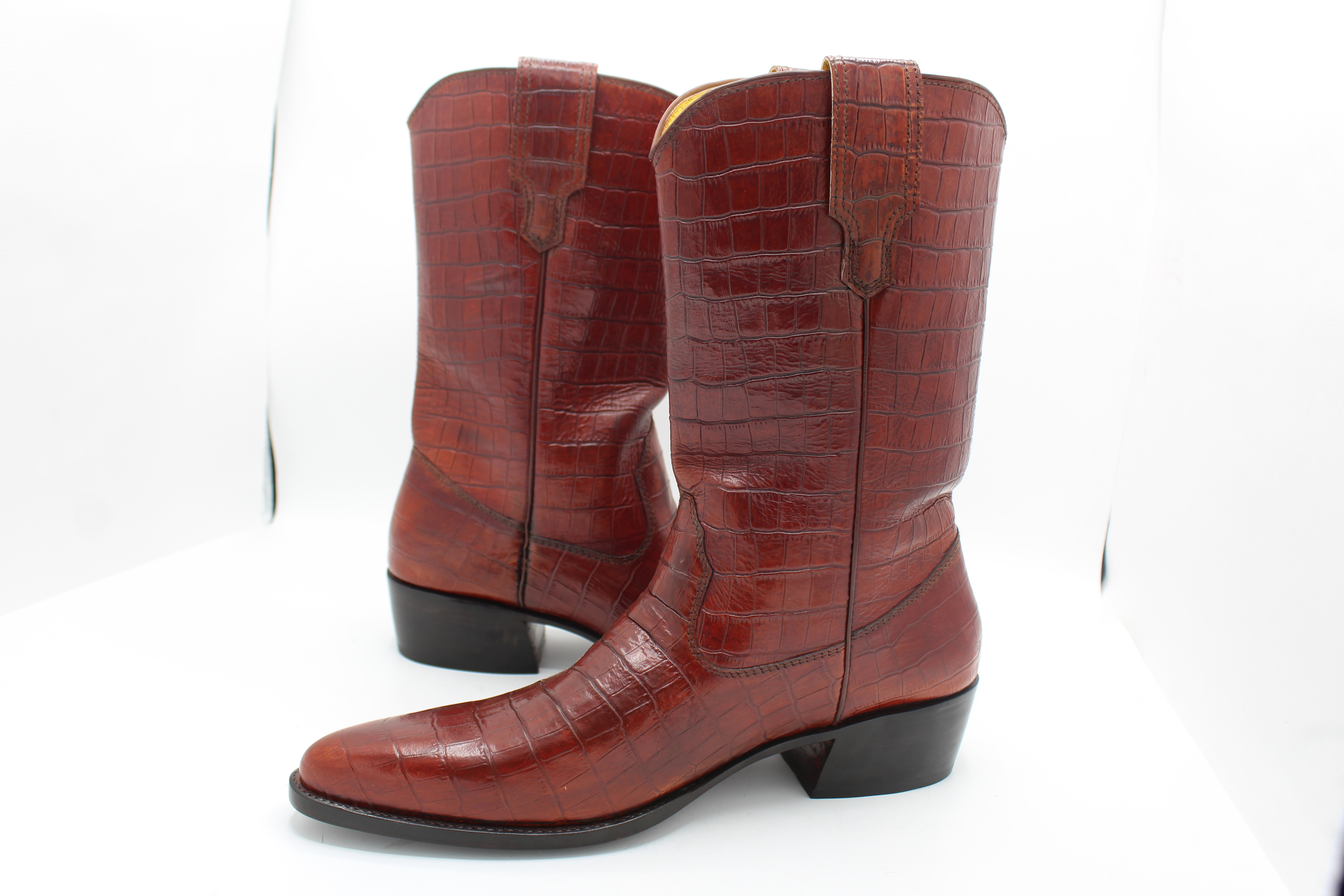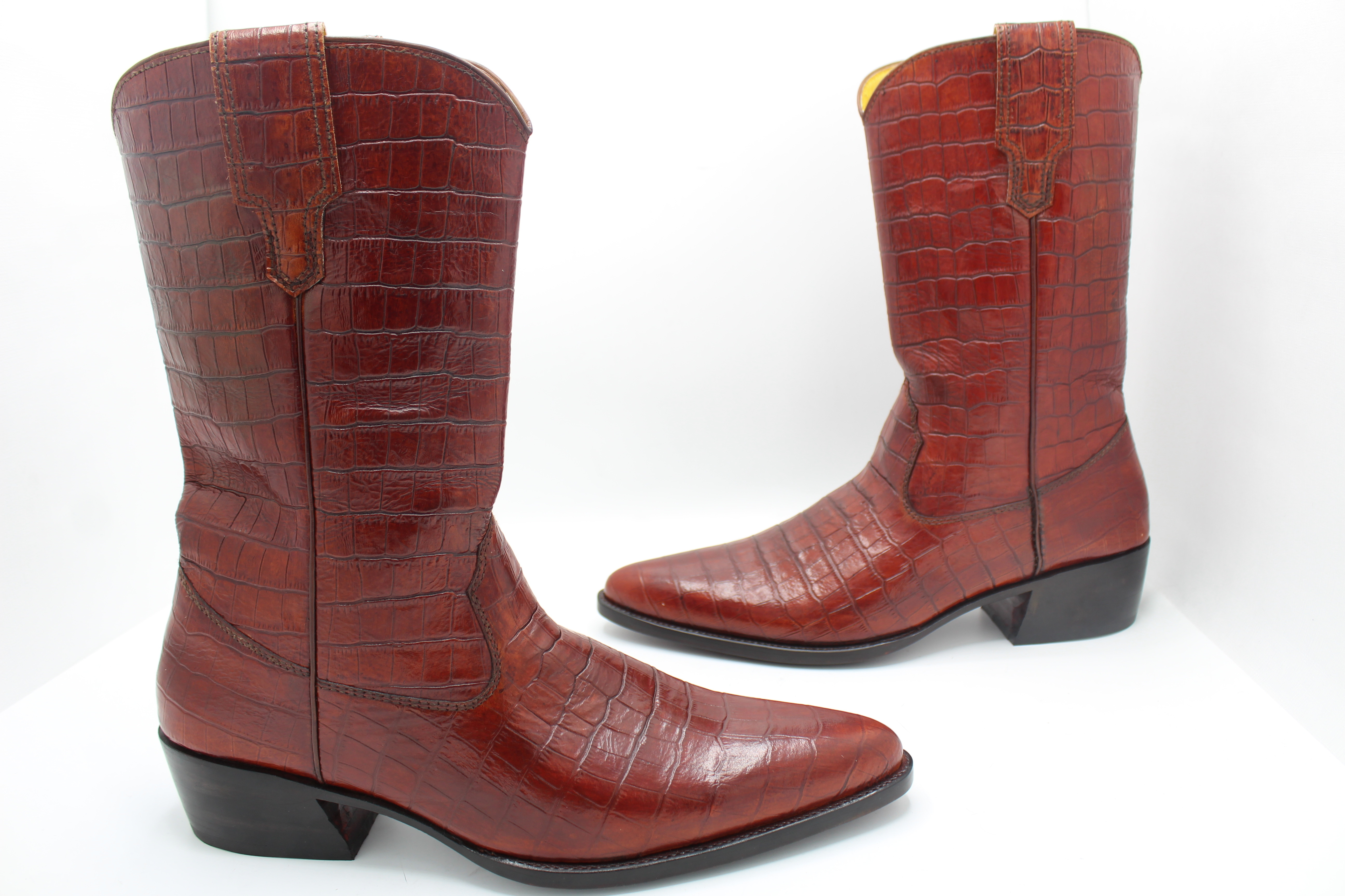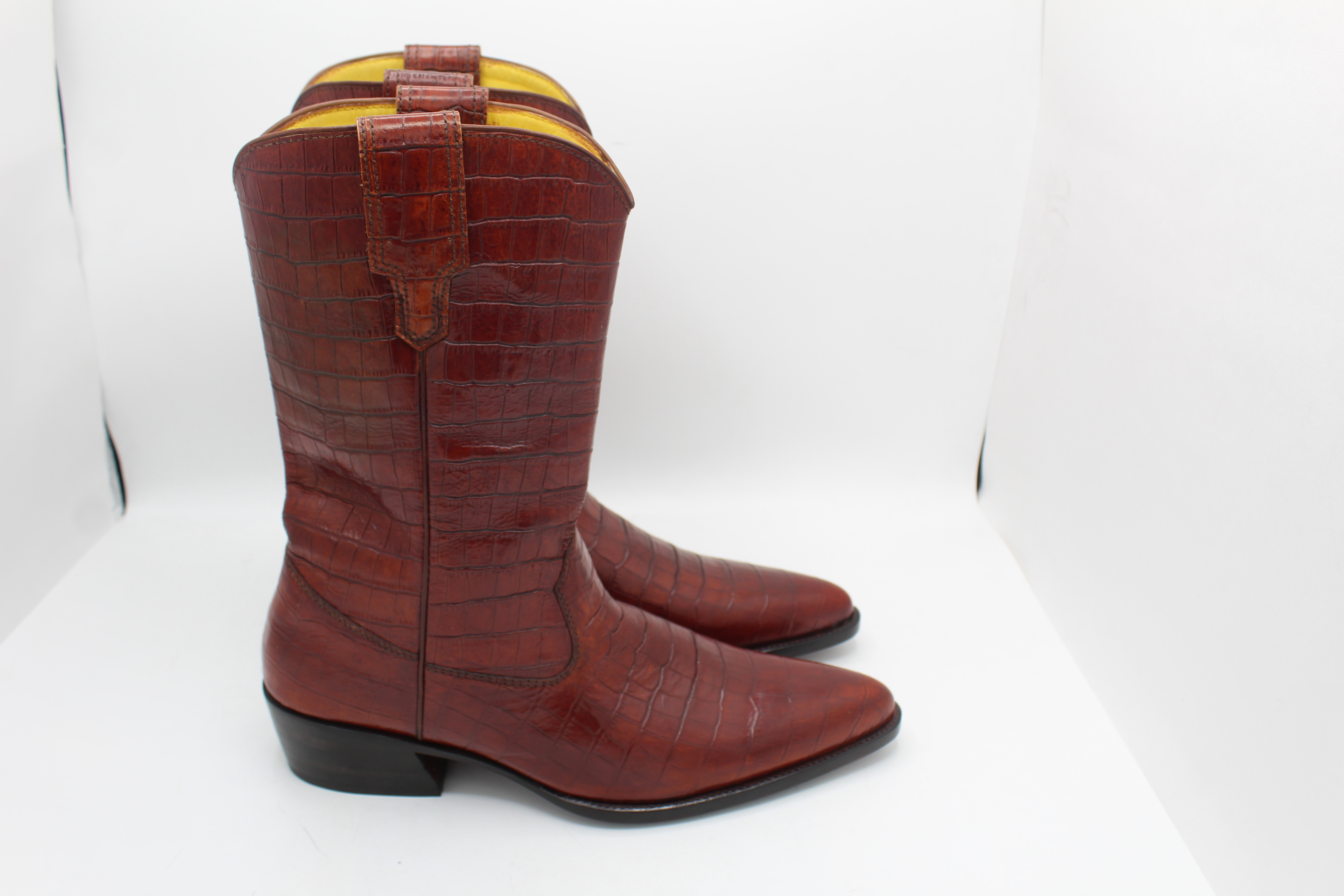 Crafted Leather Handmade Men Brown Crocodile Belly Buckle Cowboy Boot
