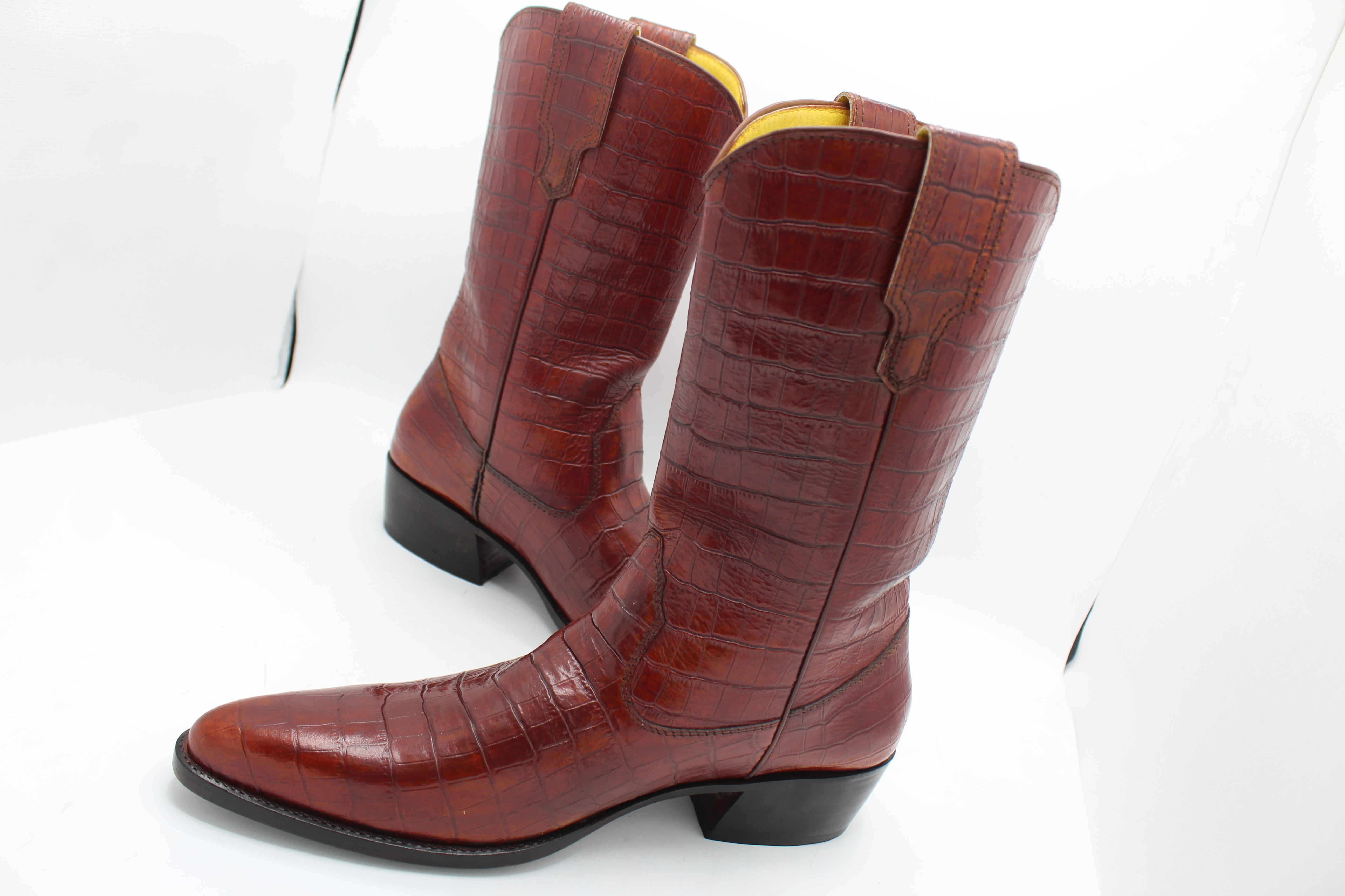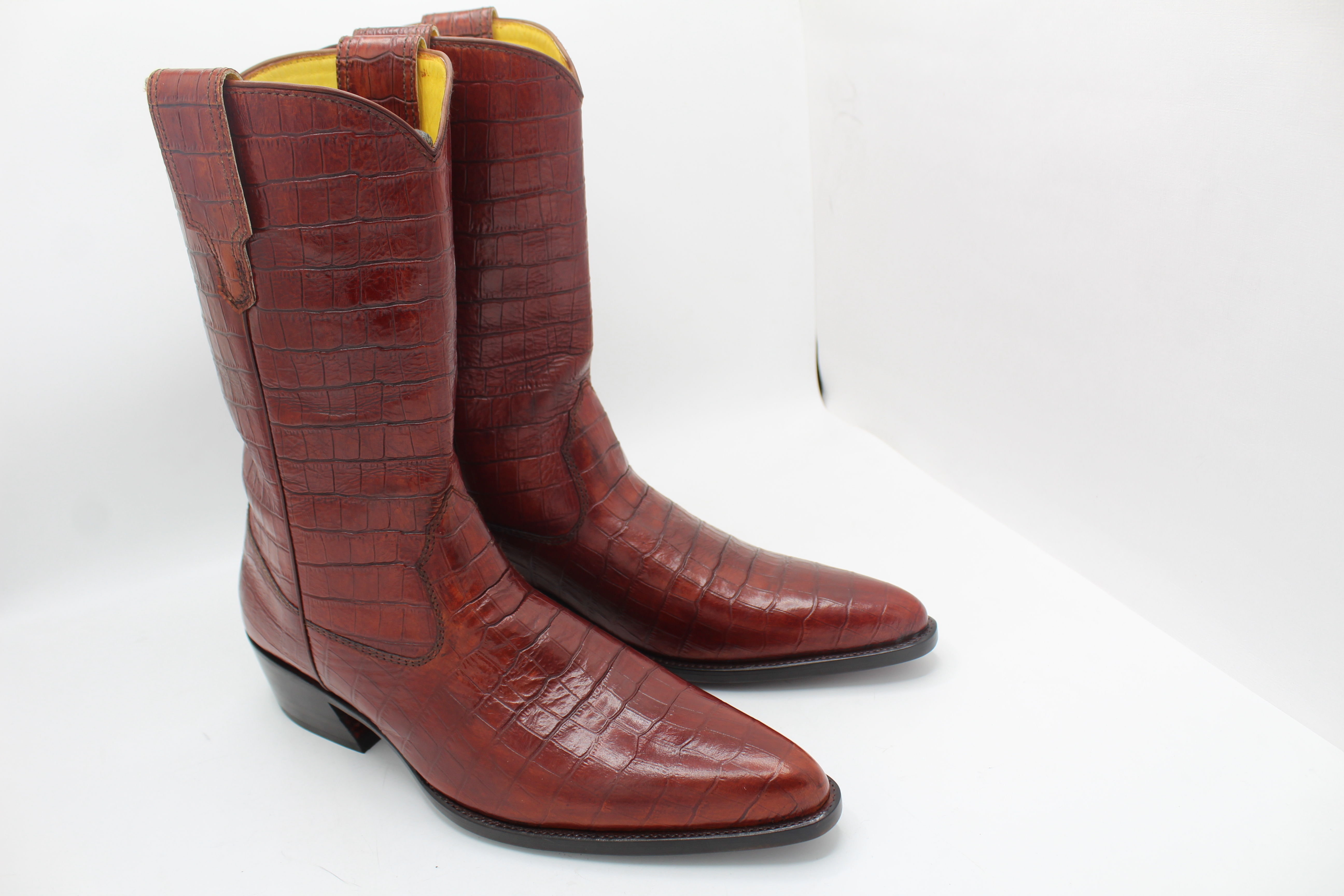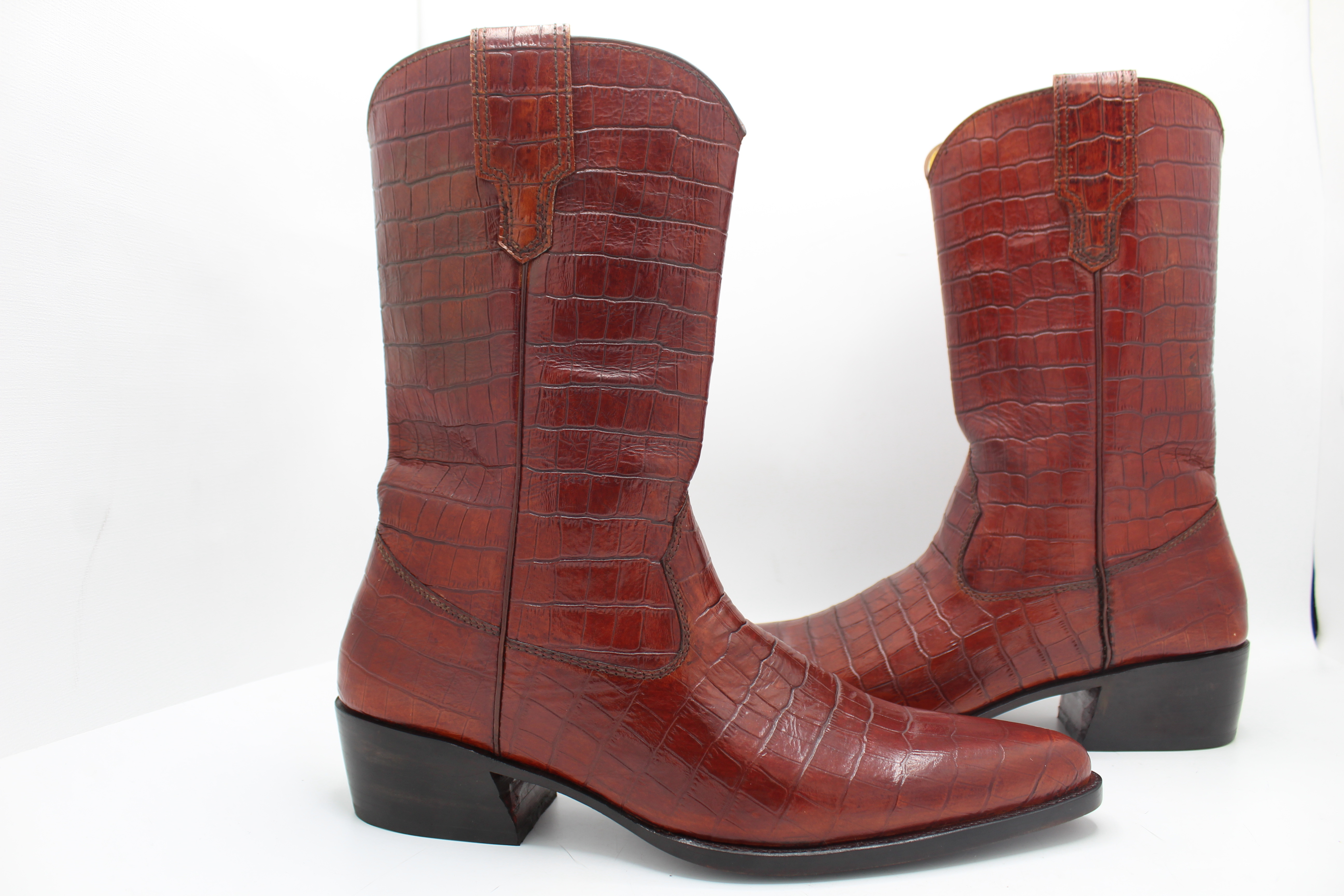 Crafted Leather Handmade Men Brown Crocodile Belly Buckle Cowboy Boot