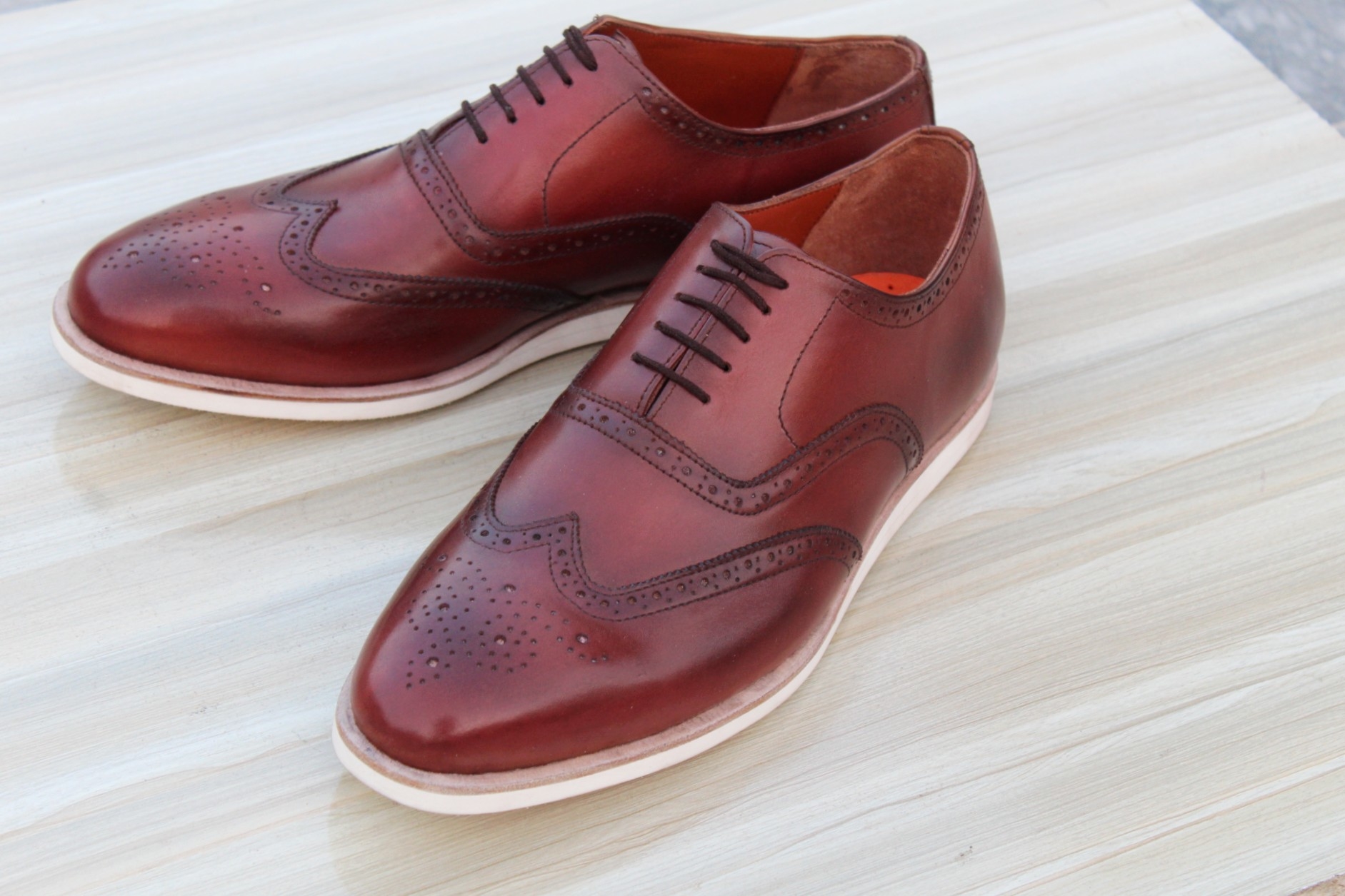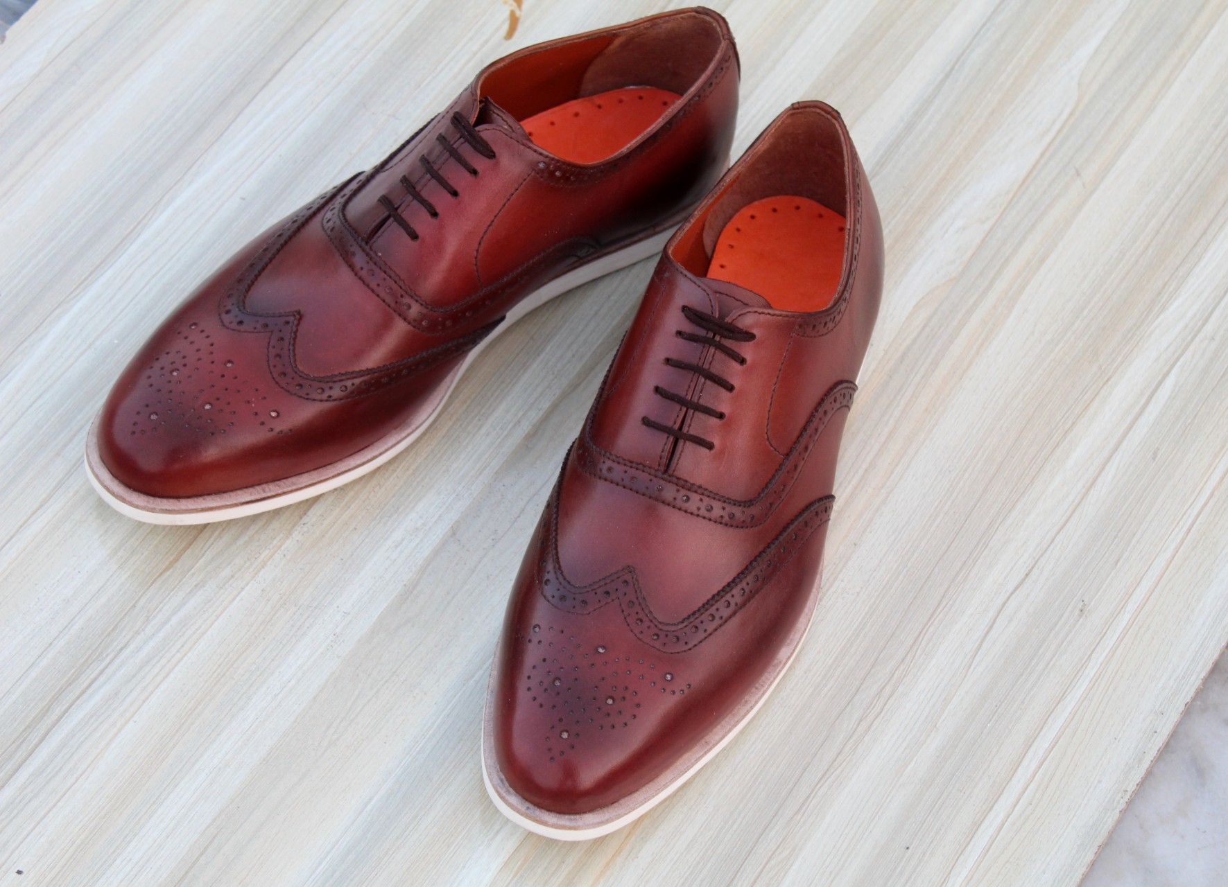 Inner: Soft Leather Sole: Leather Gender : Male Heel: Leather Color: Brown Style: Wingtip Shoes Lining Soft Calf Leather Lining Totally Hand stitched Manufacturing time 7-10 business days If you can’t find your Size/Colorjust send us message we will make for you.